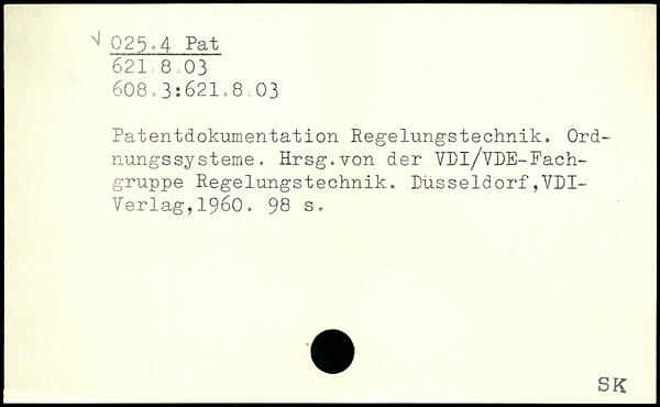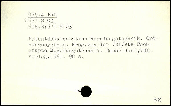 Patentdokumentation Regelungstechnik. Ordnungssysteme. Hrsg.von der VHi/VDE-Fachgruppe Regelungstechnik.