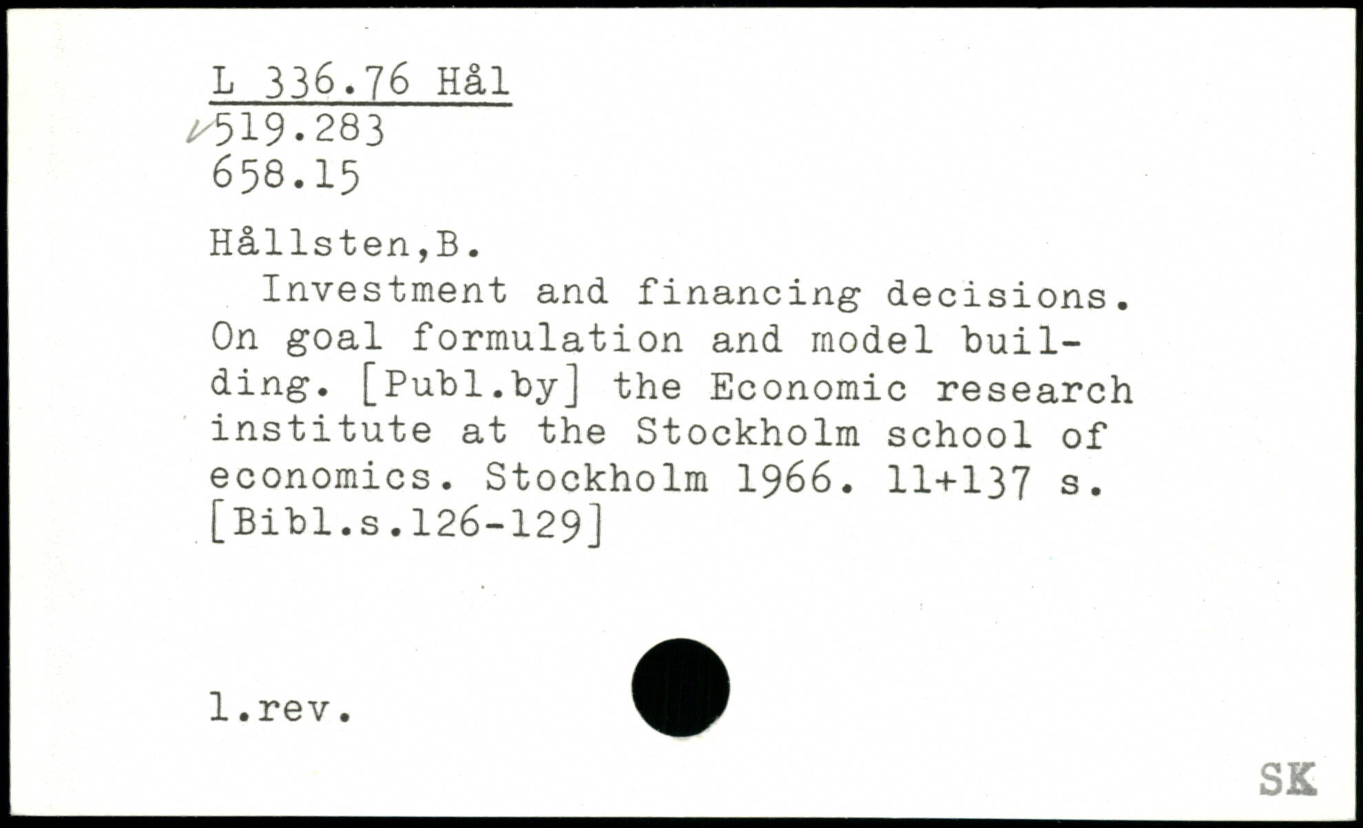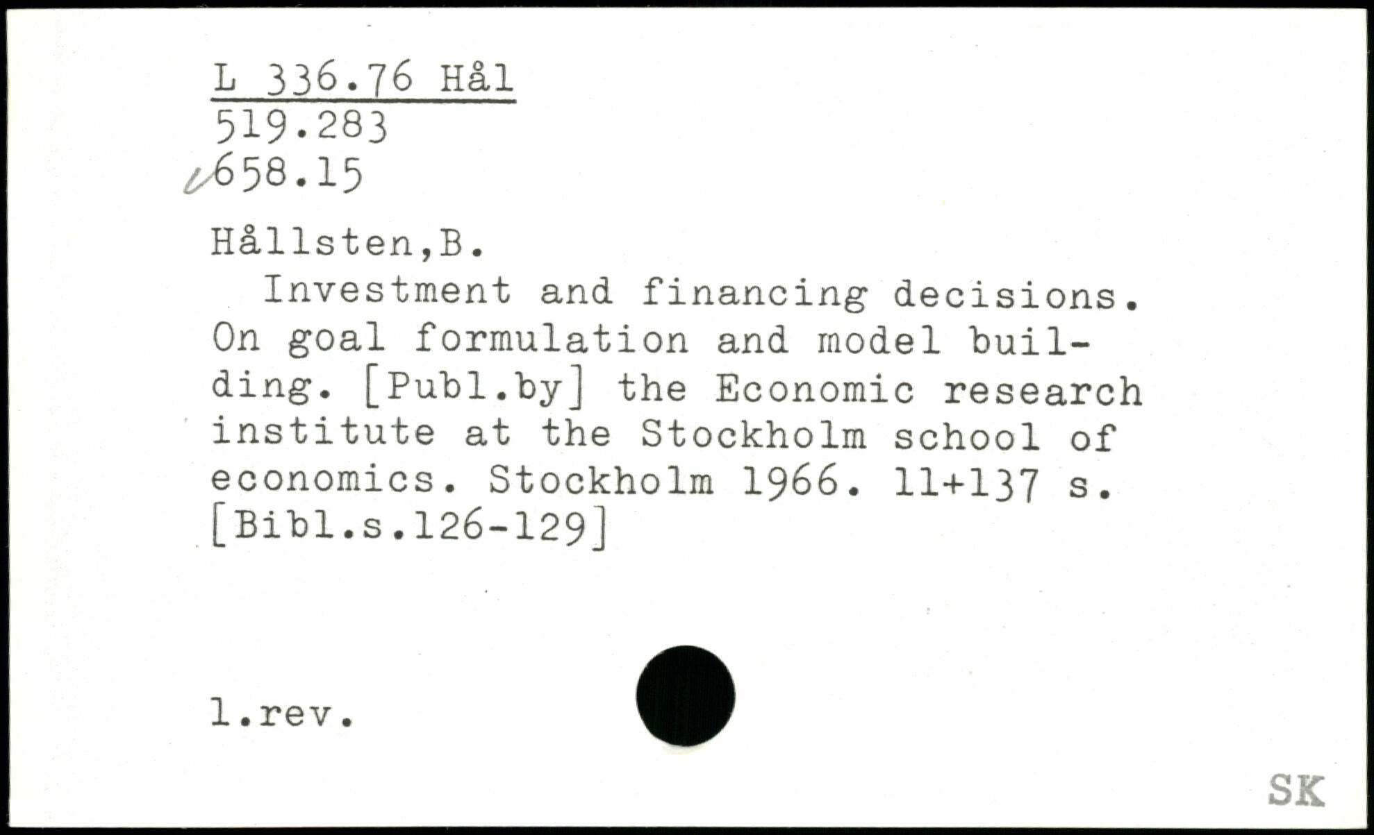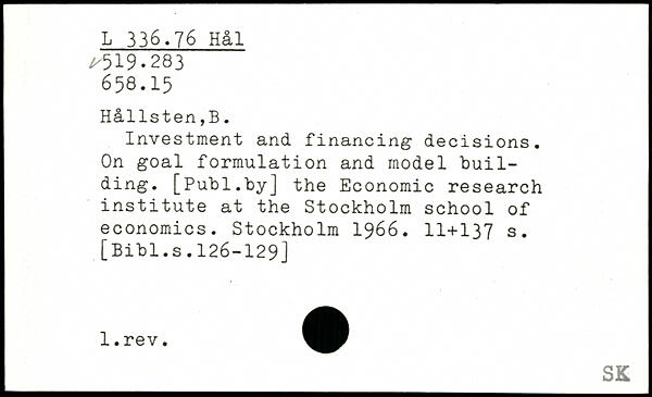 Investment and financing decisions. On goal formulation and model building.