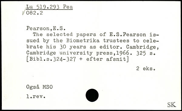 The selected papers of E.S.Pearson issued by the Biometrika trustees to celebrate his 30 years as editor.