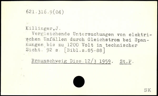 Vergleichende Untersuchungen von elektrischen Unfällen durch Gleichstrom hei Spannungen, bis zu 1200 Volt in technischer Sicht