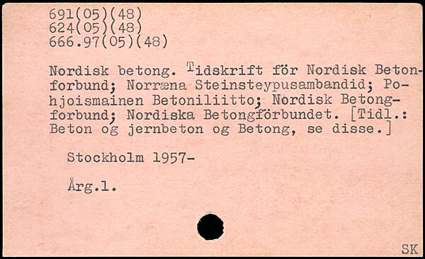 Nordisk betong, ^idskrift för Nordisk Betonforbund} Norræna Steinsteypusambandid} Po-hjoismainen Beton1111ttoj Nordisk Betong-forbund} Nordiska Betongförbundet. [Tidl.: Beton og jernbeton og Betong, se disse.]