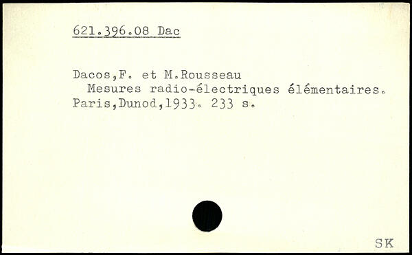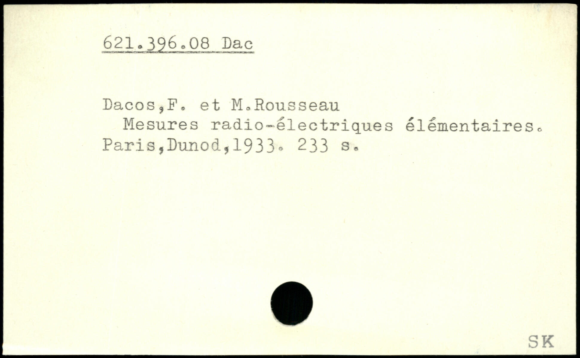 Mesures radio-électriques élémentaireso Paris,Dunod,1933, 233 s-