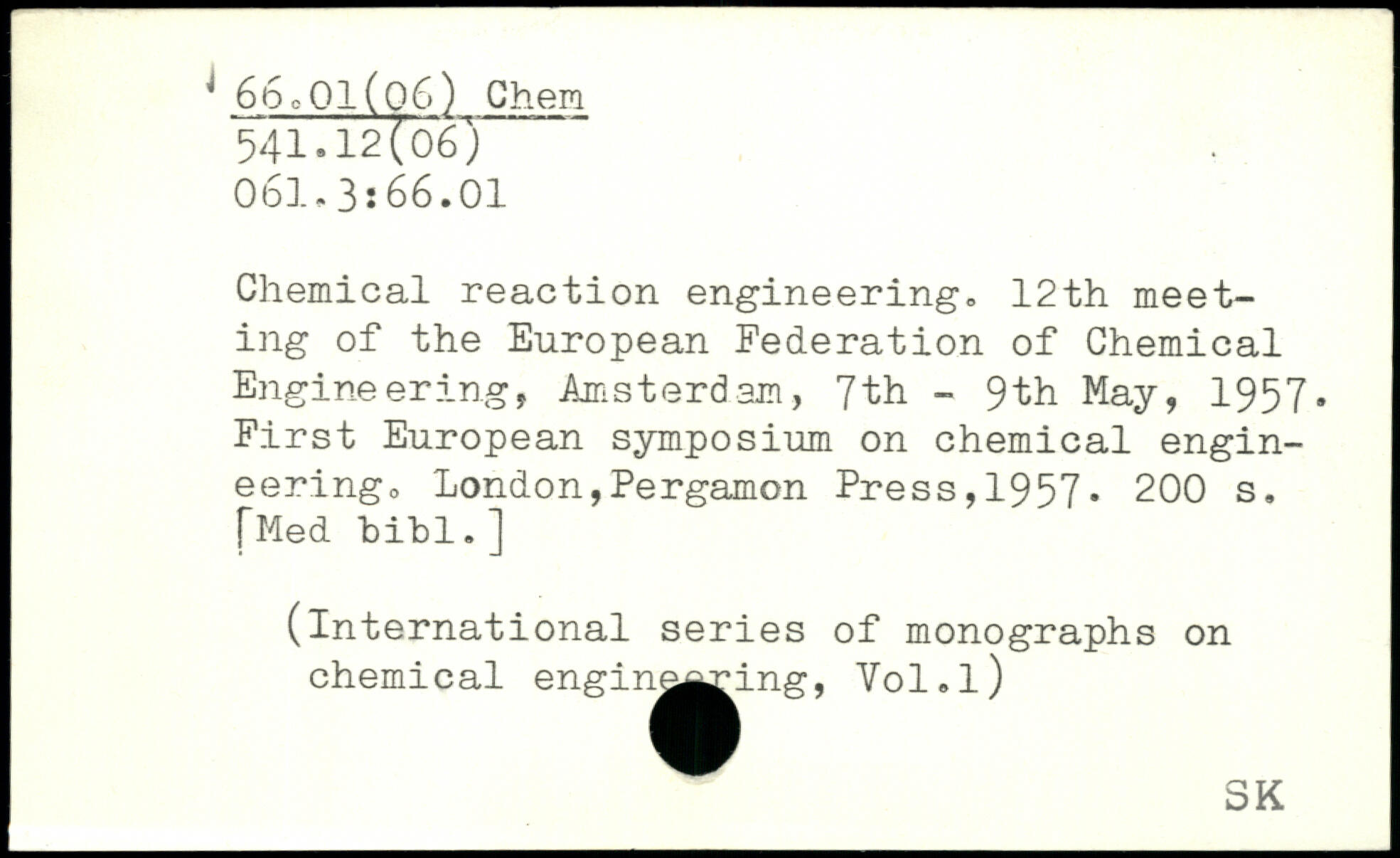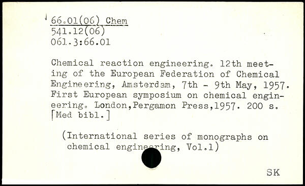 Chemical reaction engineering. 12th meeting of the European Federation of Chemical Engineering, Amsterdam, 7th - 9th May, 1957. First European symposium on chemical engineering.