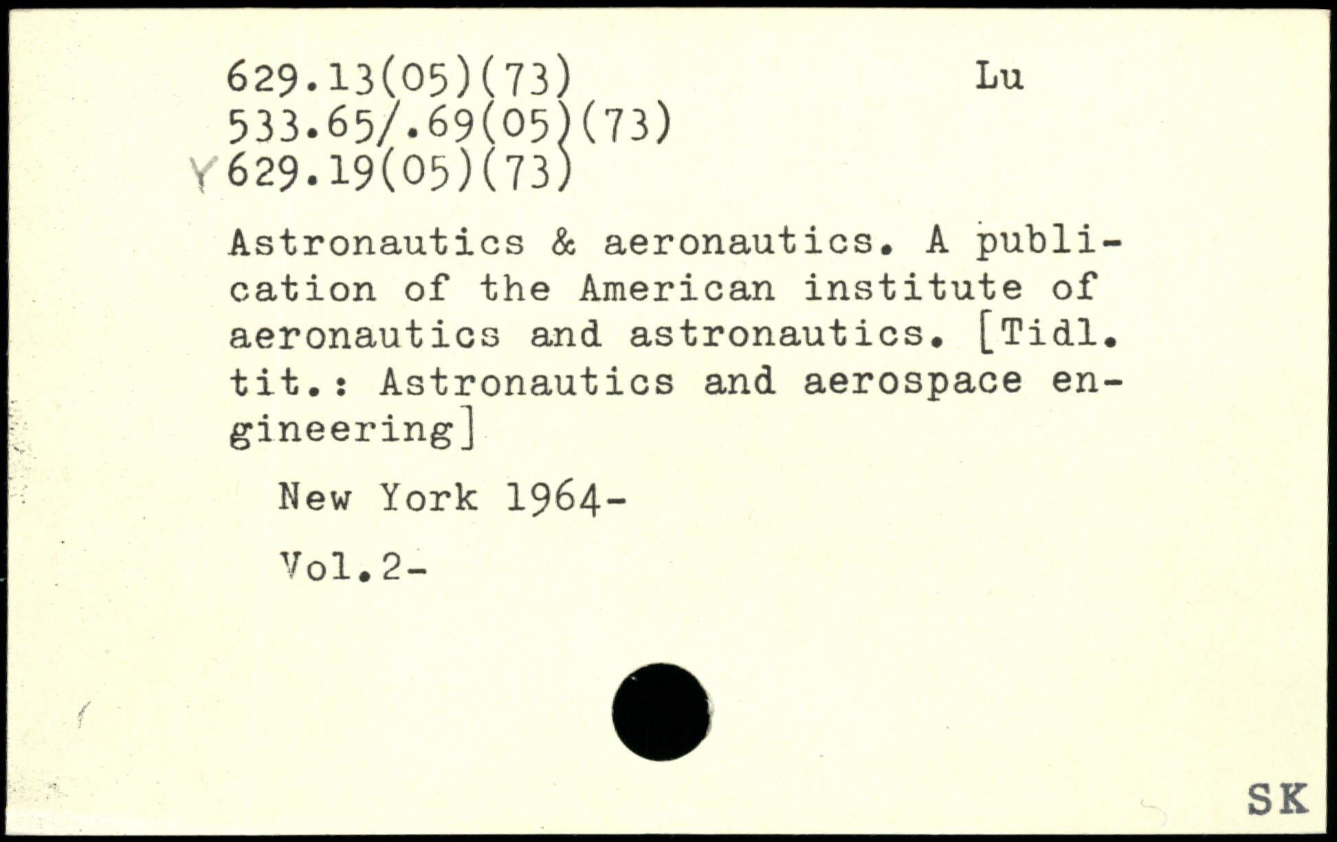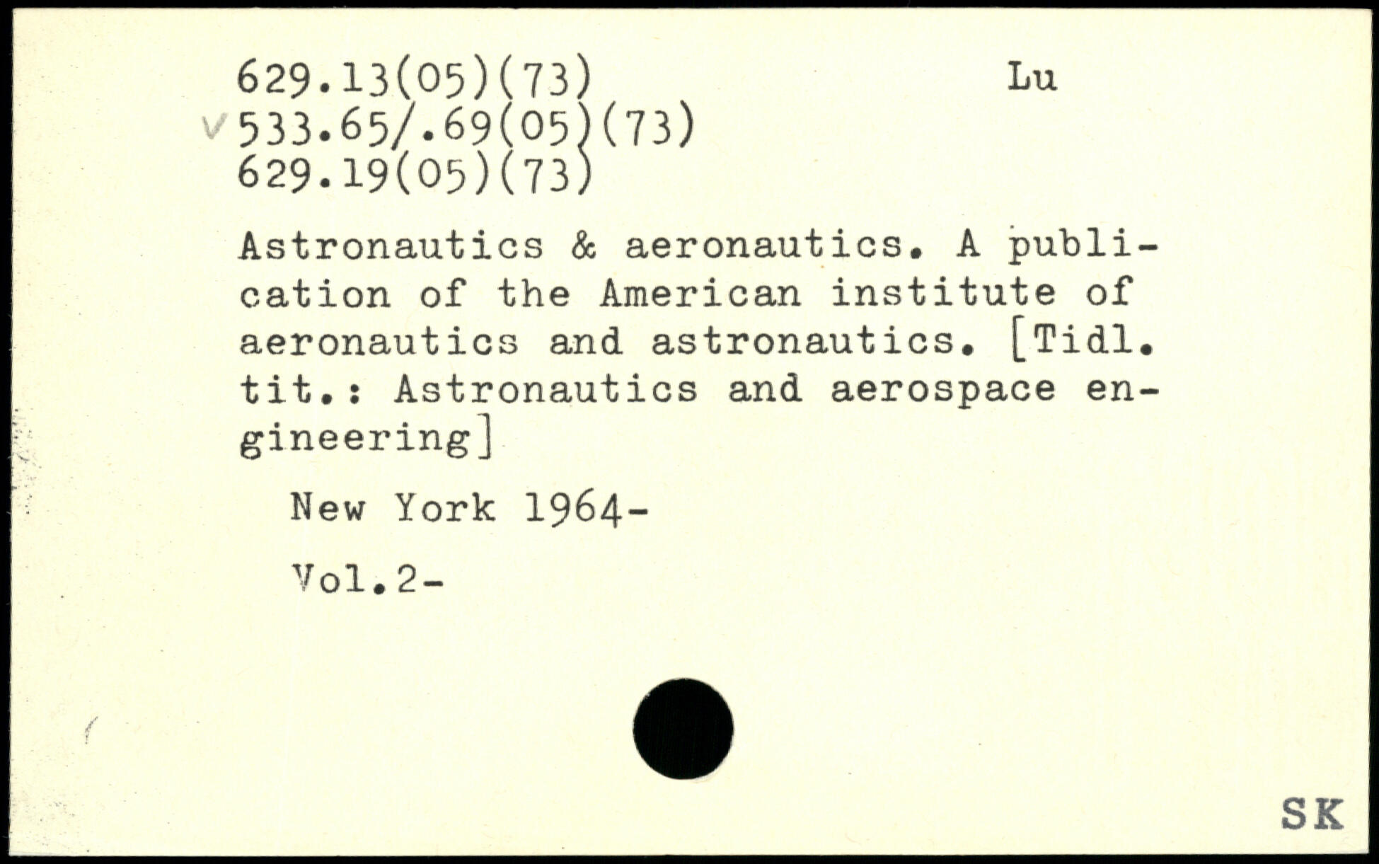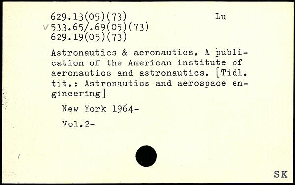 Astronautics & aeronautics. A publication of the American institute of aeronautics and astronautics. [Tidl. tit.: Astronautics and aerospace engineering]
