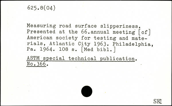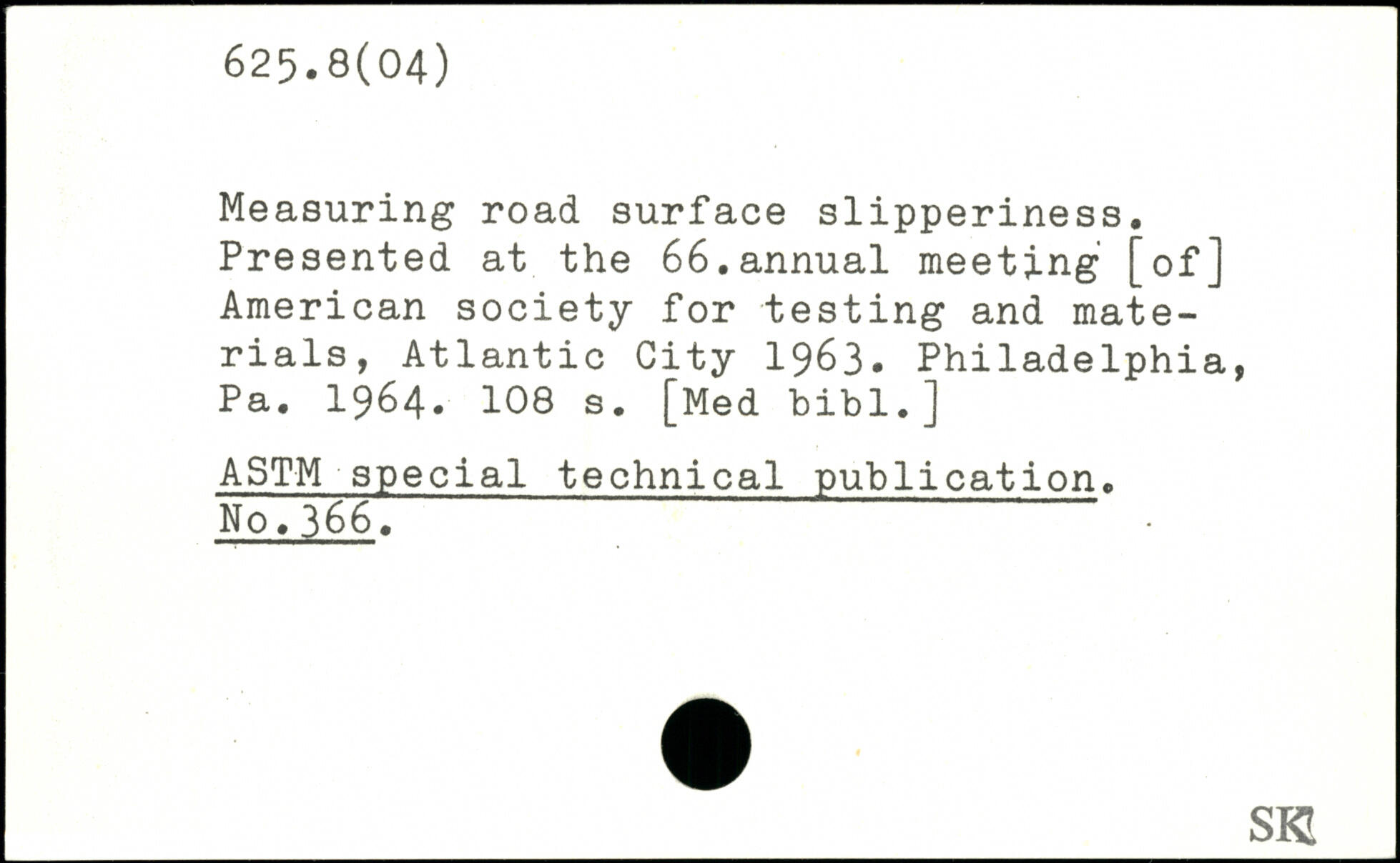 Measuring road surface slipperiness. Presented at the 66.annual meeting [of] American society for testing and materials, Atlantic City 1963- Philadelphia, Pa. 1964.