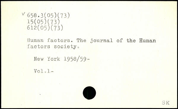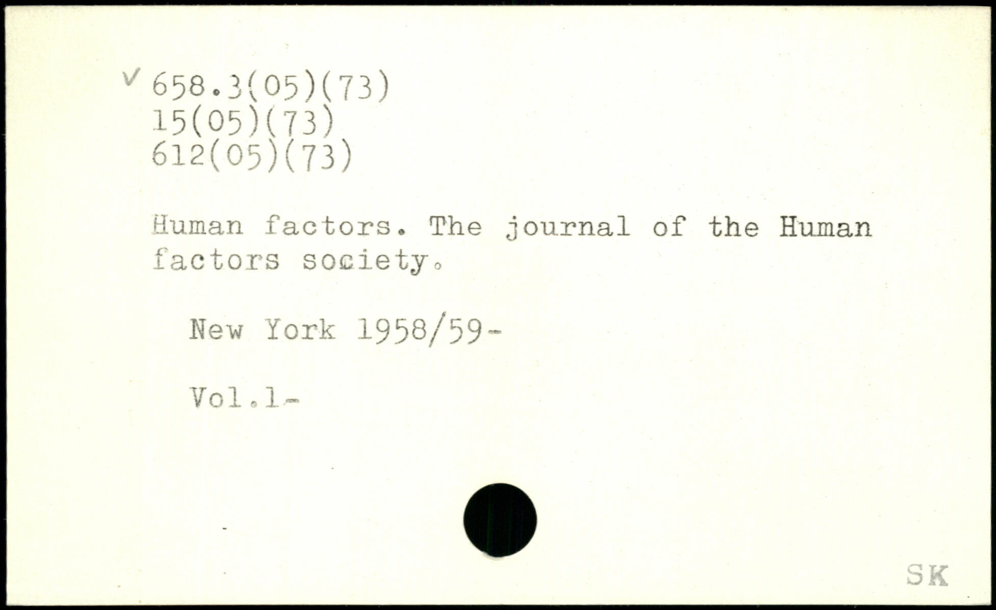 Human factors. The journal of the Human factors society, Nev York 1958/59- Vol. I-