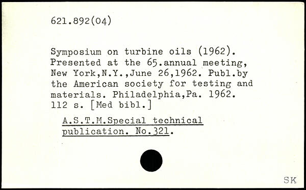 Symposium on turbine oils (1962). Presented at the 65.annual meeting, New York,N.Y.,June 26,1962.