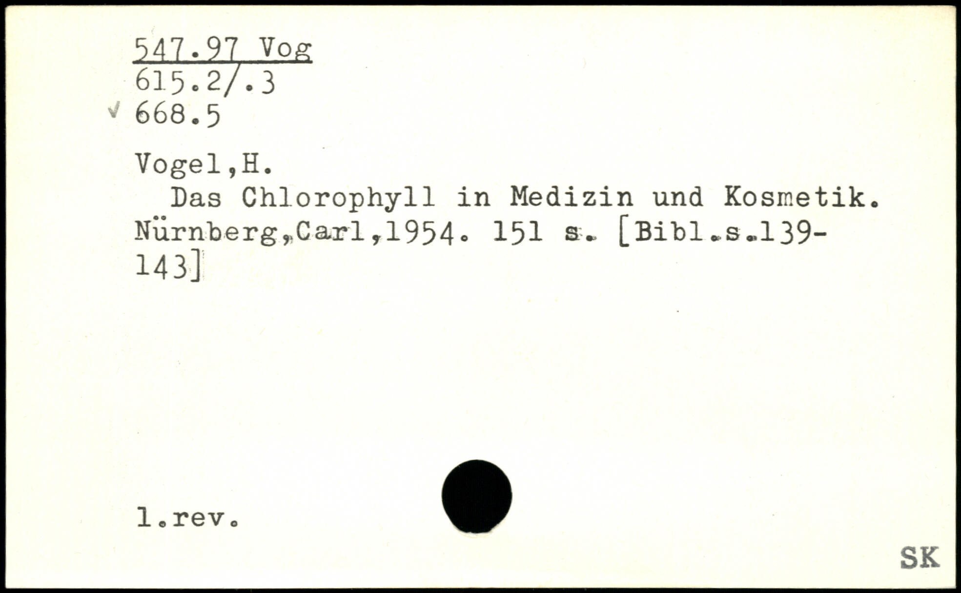 Das Chlorophyll in Medizin und Kosmetik. NürnbergCarl ,1954. 151