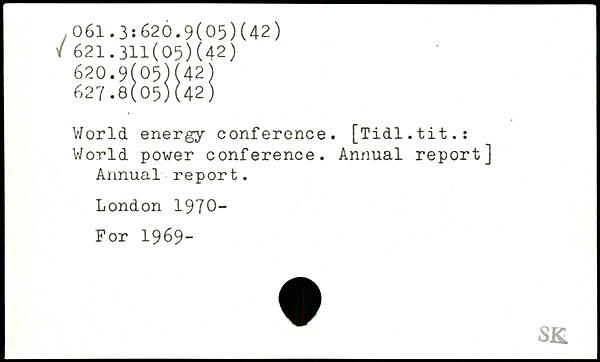 World energy conference. [Tidl.tit.: World power conference. Annual report] Annual report.