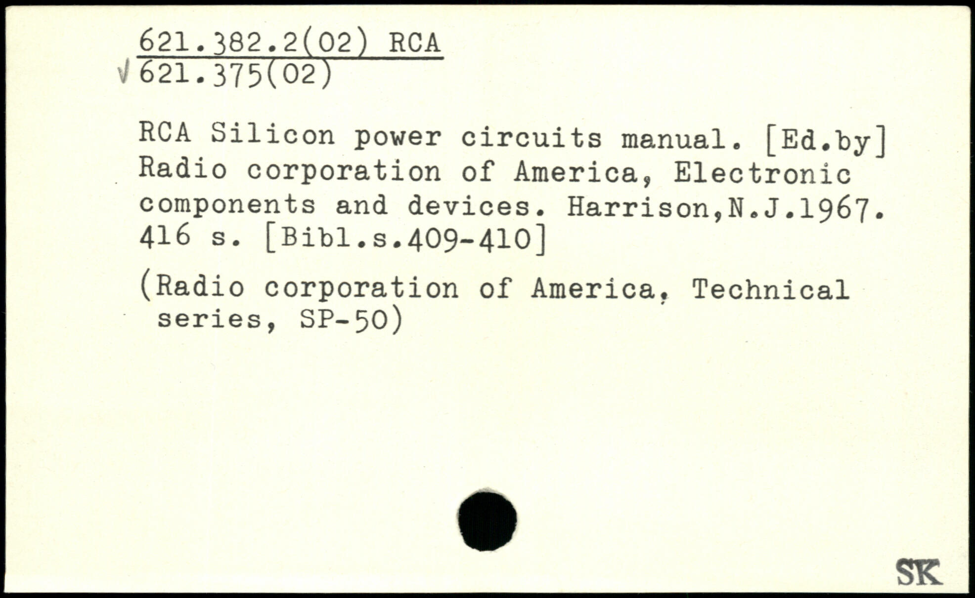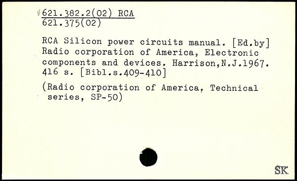 RCA Silicon power circuits manual. [Ed.by] Radio corporation of America, Electronic components and devices. Harrison,N.J.1967