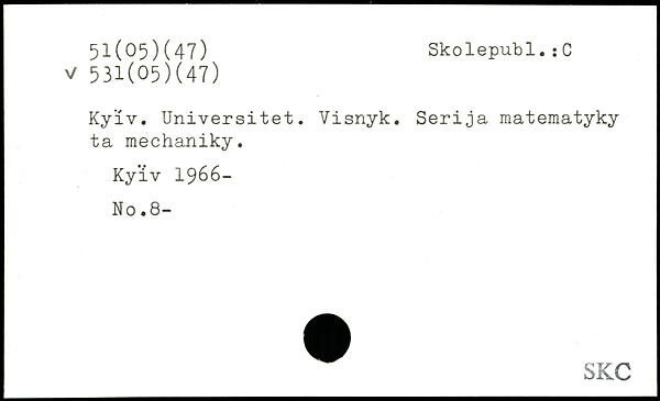 Kyiv. Universitet. Visnyk. Serija matematyky ta mechaniky. Kyiv 1966-