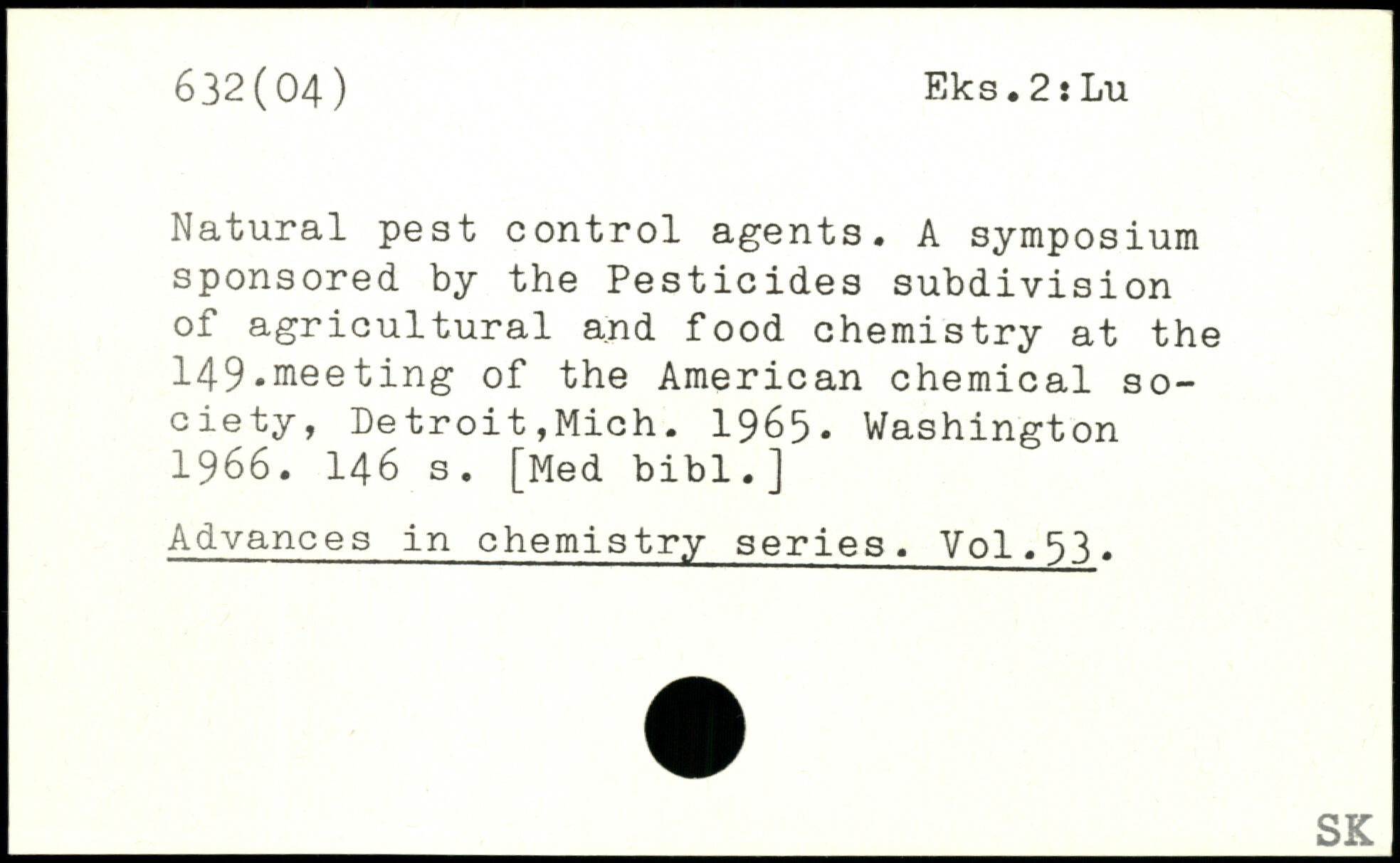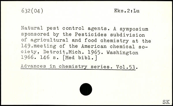 Natural pest control agents. A symposium sponsored by the Pesticides subdivision of agricultural and food chemistry at the 149.nieeting of the American chemical society, Detroit,Mich. 1965.