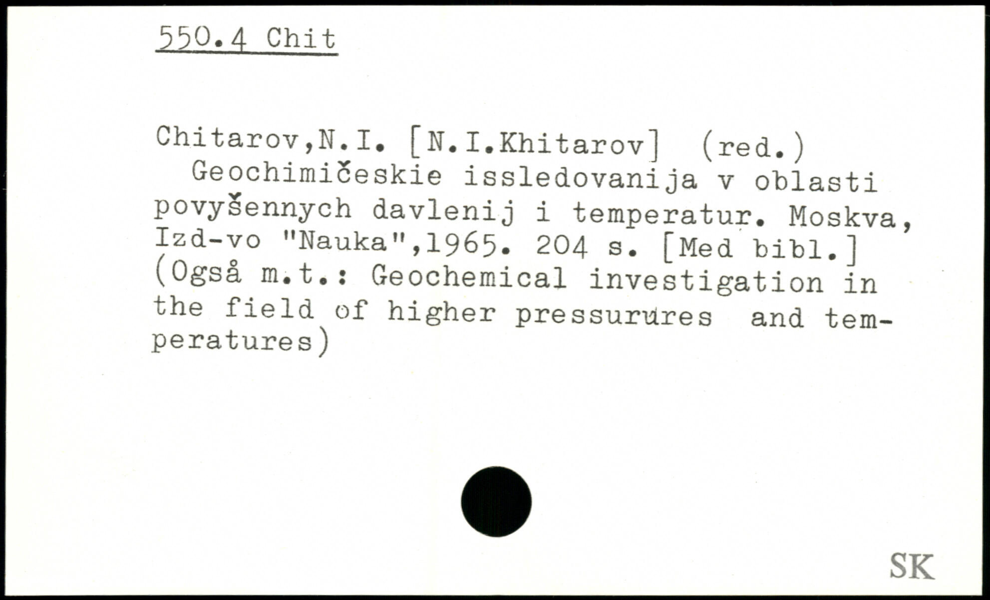 Chitarov,N.I. [N.I.Khitarov] (red.) GeochimiSeskie issledovanija v oblasti povysennych davlenij i temperatur. Moskva, Izd-yo "Nauka'M965.