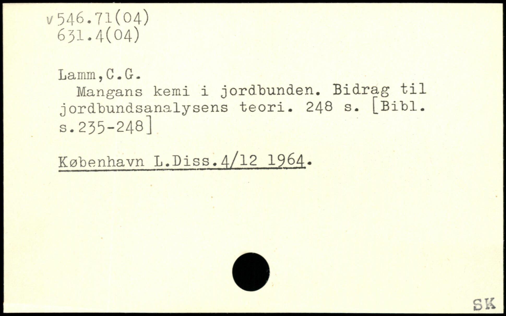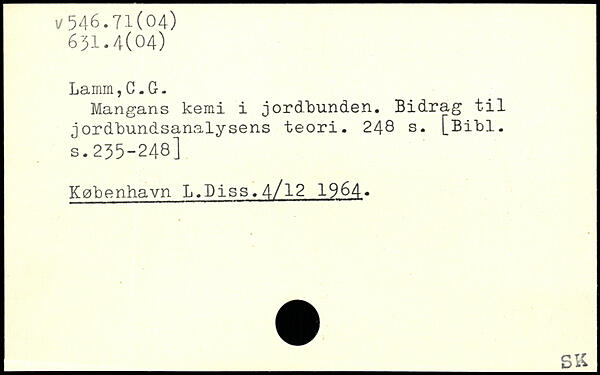 Mangans kemi i jordbunden. Bidrag til jordbundsanalysens teori.
