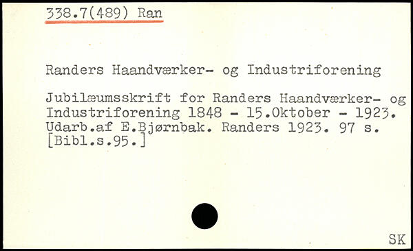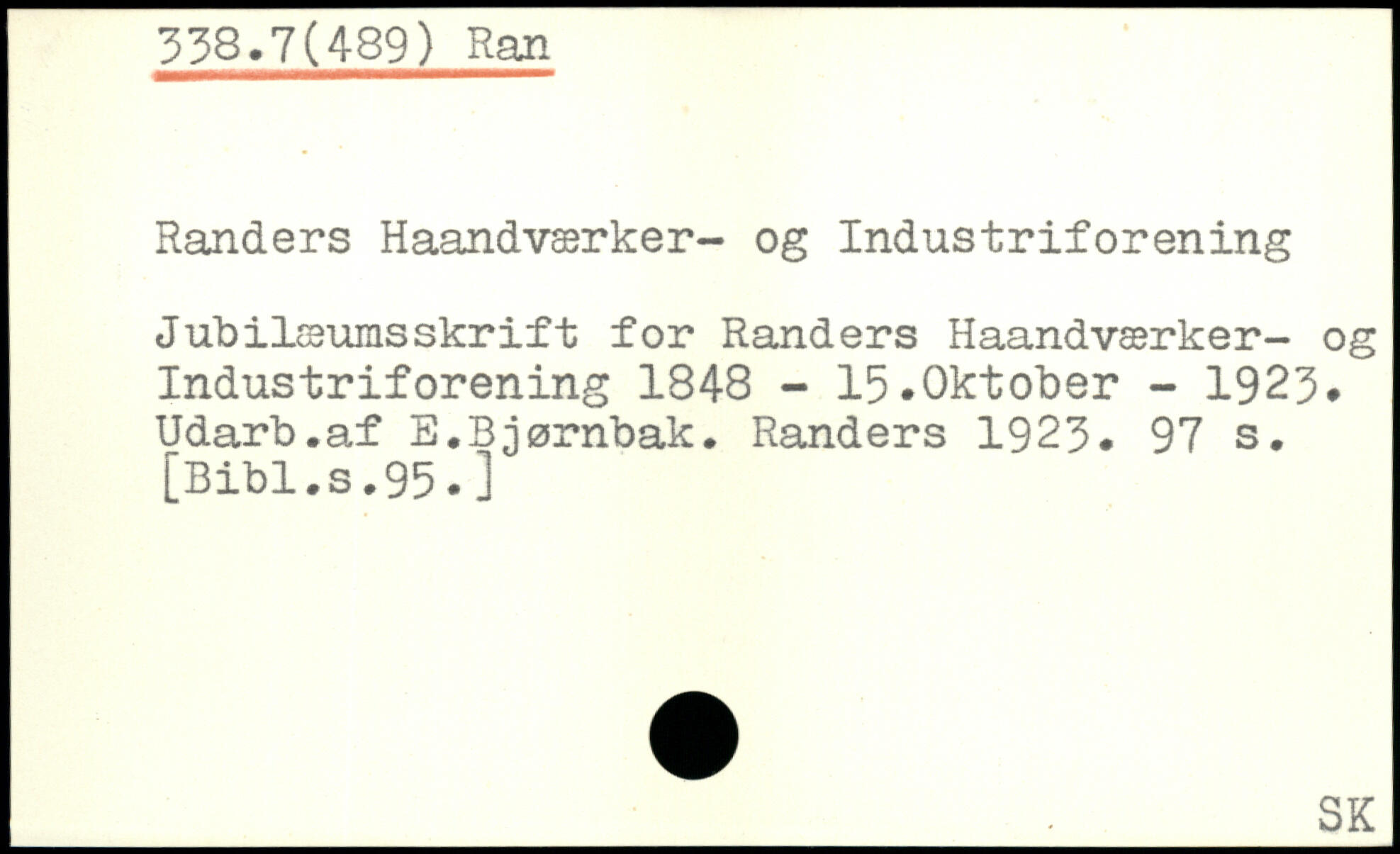 Randers Haandværker- og Industriforening Jubilæumsskrift for Randers Haandværker- og Industriforening 1848 - 15.Oktober - 1923. Udarb.af E.Bjørnbak. Randers 1923.