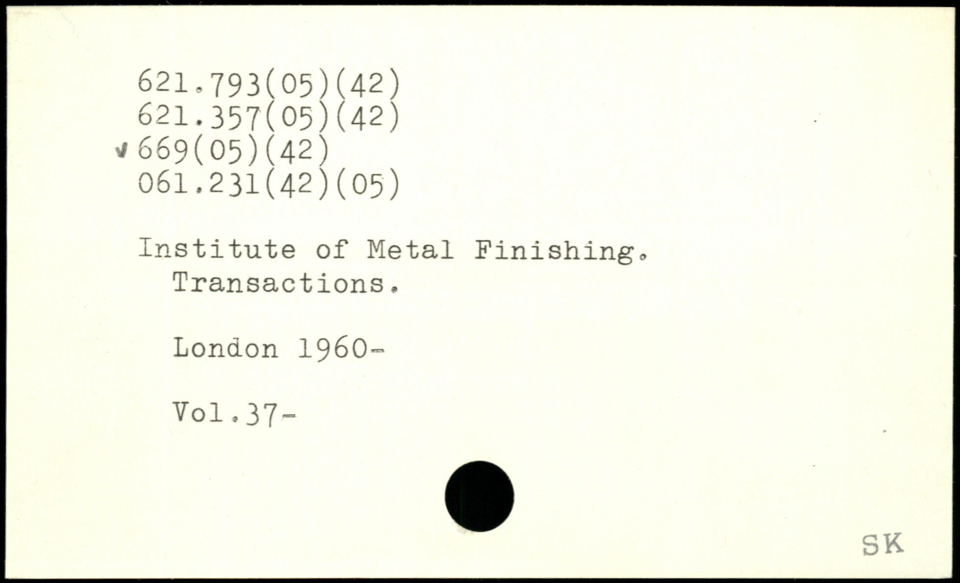 Institute of Metal Finishing, ; Transactions.