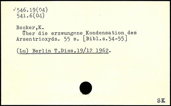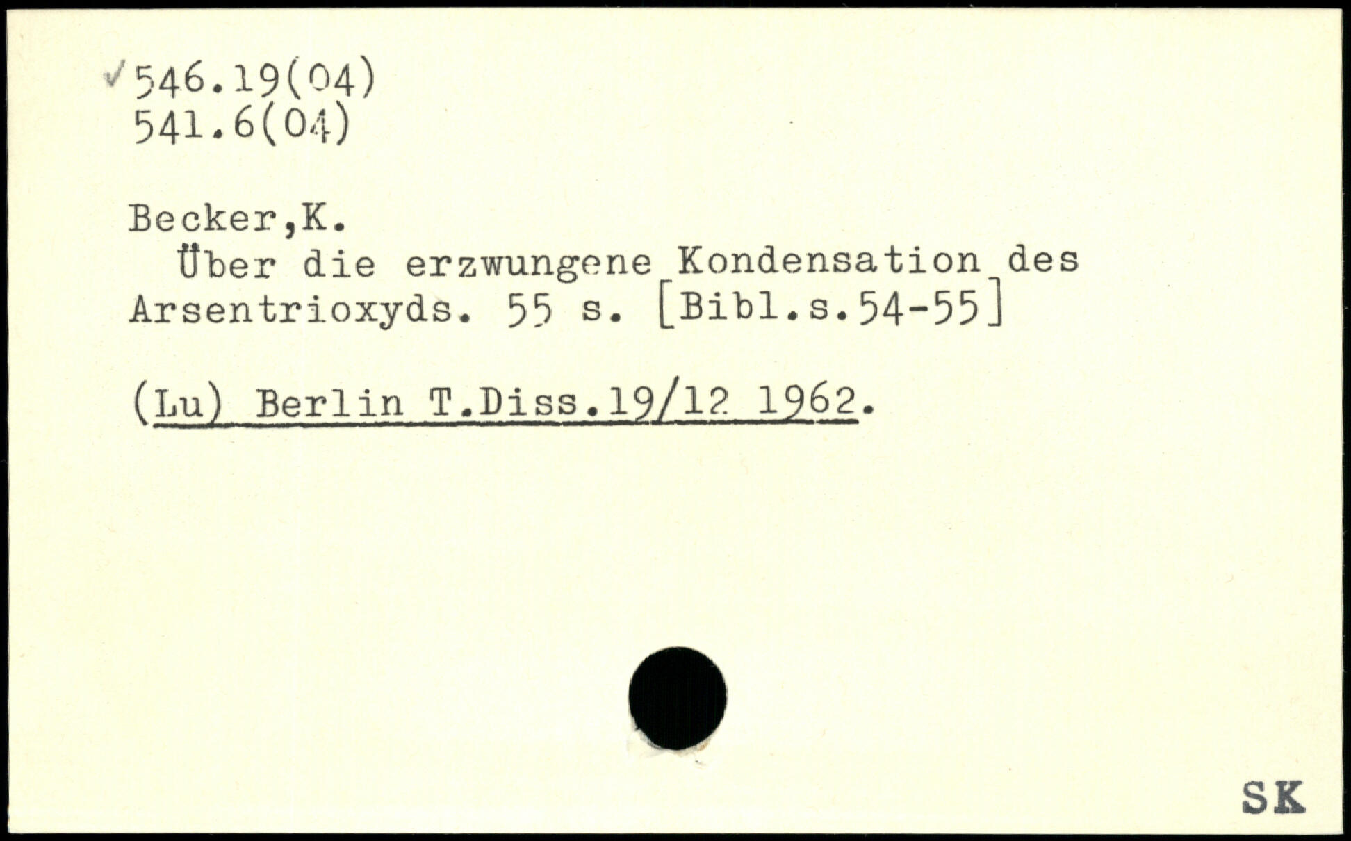 Über die erzwungene Kondensation des Arsentrioxyds.