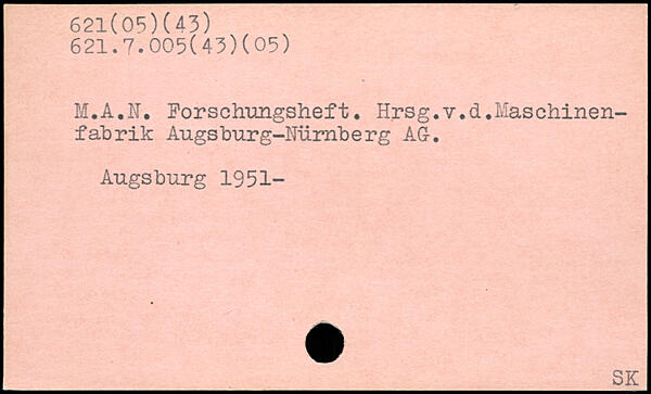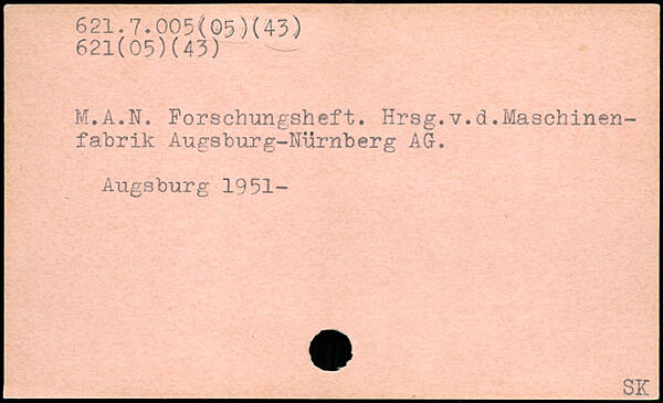 M.A.N. Forschungsheft. Hrsg.v.d.Maschinenfabrik Augsburg-Nürnberg AG. Augsburg 1951-