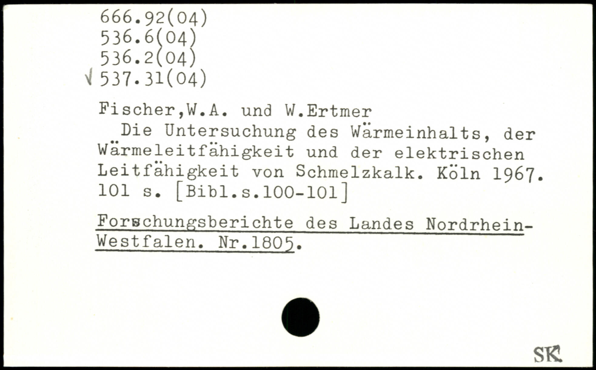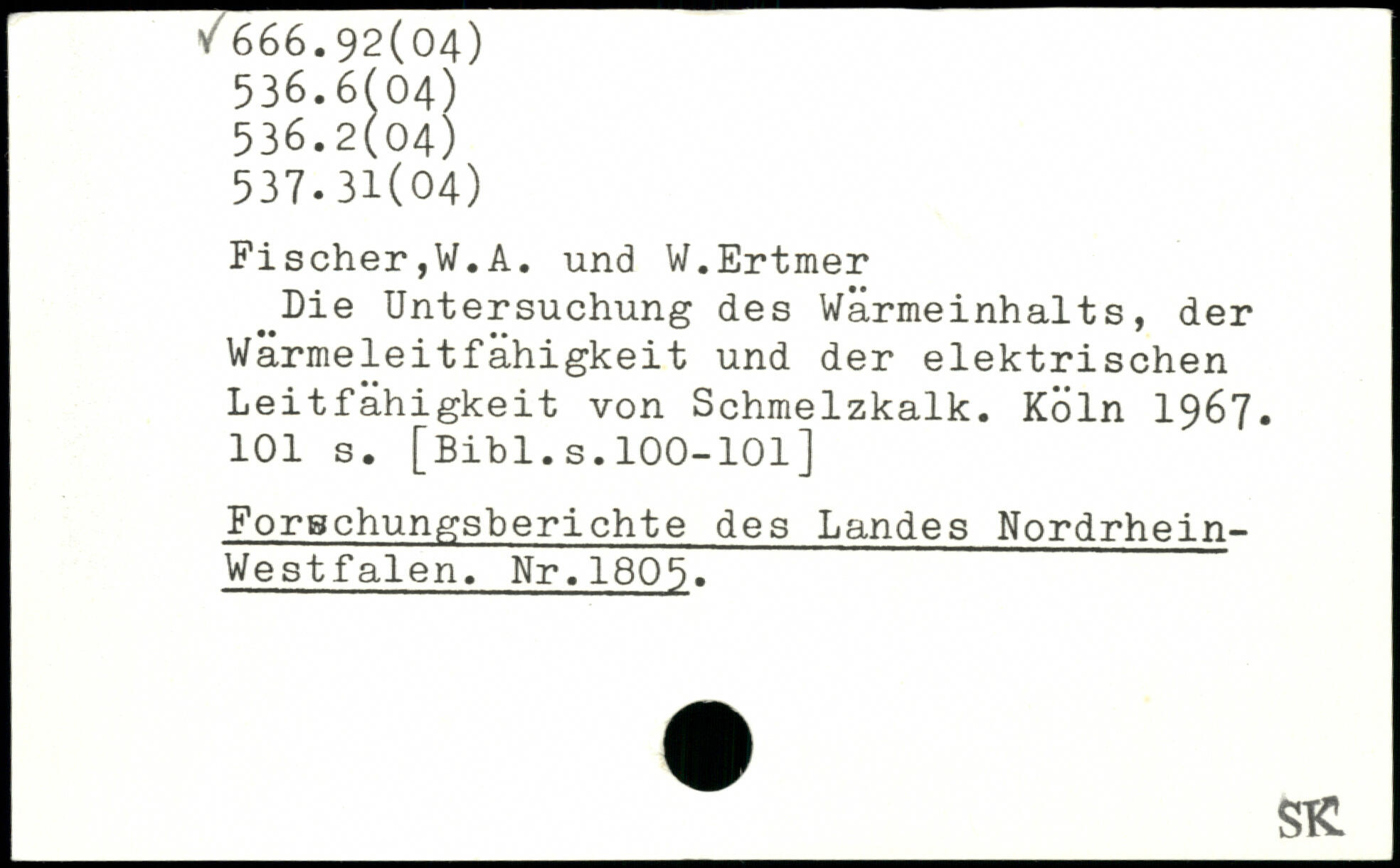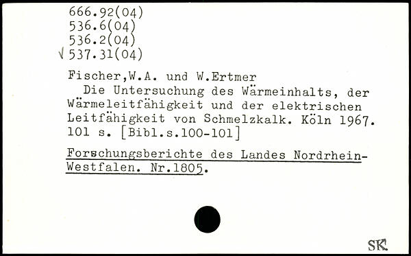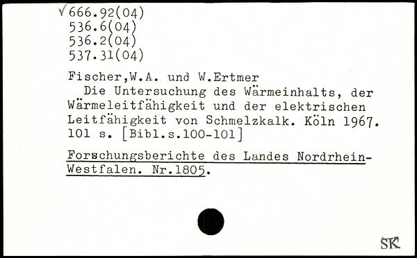 Fischer,W.A. und W.Ertmer ^Die Untersuchung des Wärmeinhalts, der Wärmeleitfähigkeit und der elektrischen Leitfähigkeit von Schmelzkalk.
