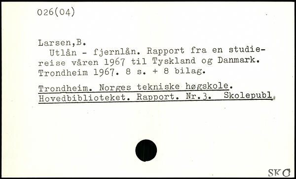 Utlån - fjernlån. Rapport fra en studiereise våren 1967 til Tyskland og Danmark.