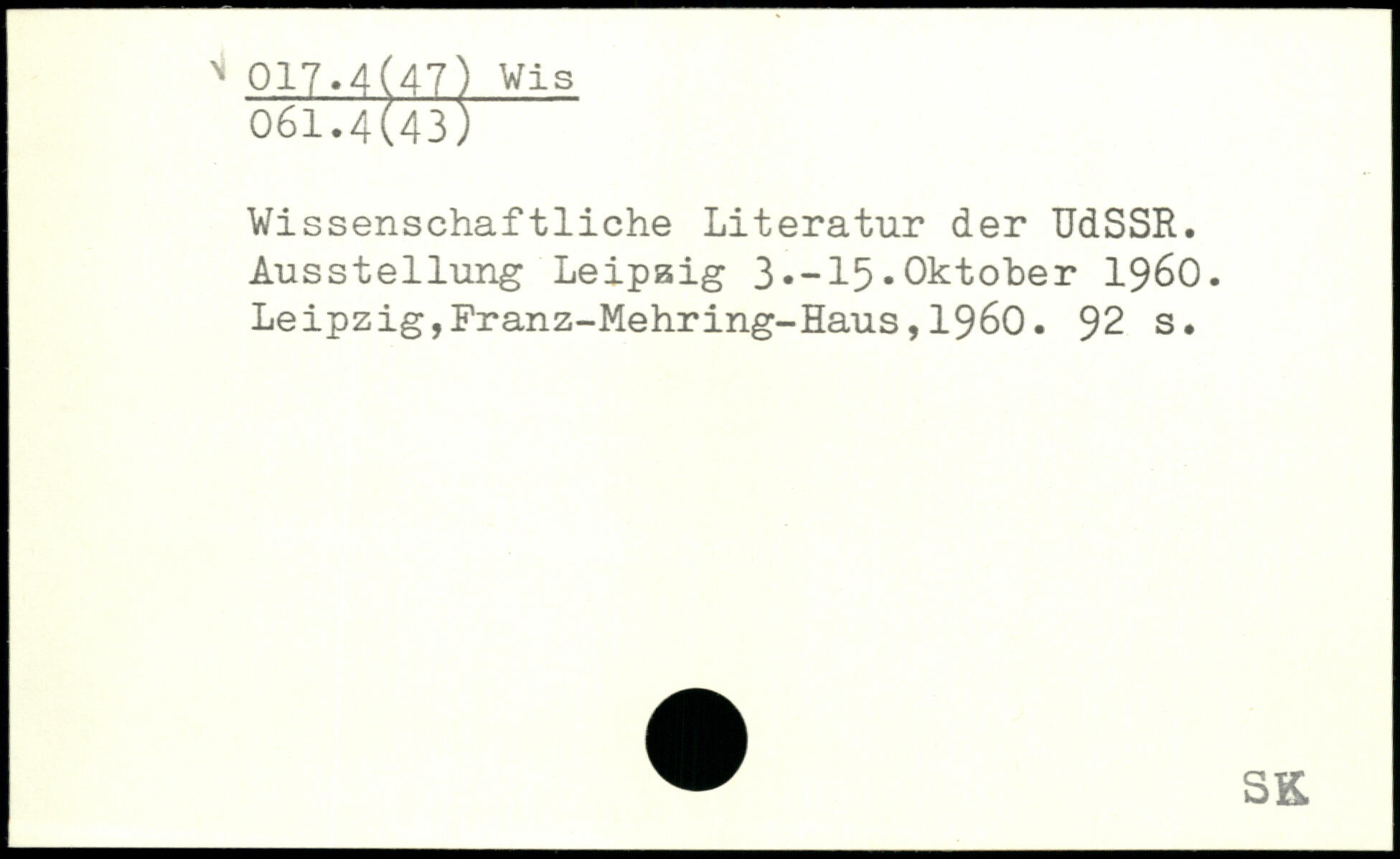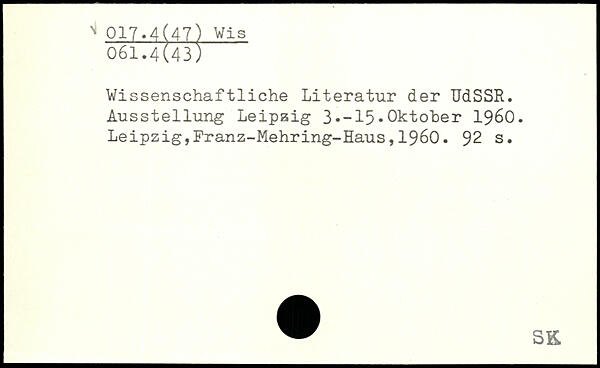 Wissenschaftliche Literatur der UdSSR. Ausstellung Leipzig 3.-15.Oktober 1960.