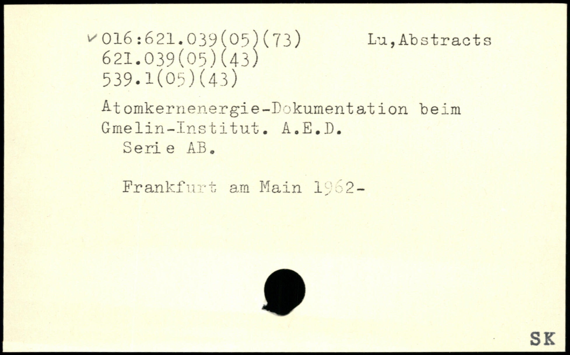 Atomkernenergie-lokumentation beim Gmelin-Institut. A.E.D. Serie AB. Frankfurt am Main 1 962- _ SK