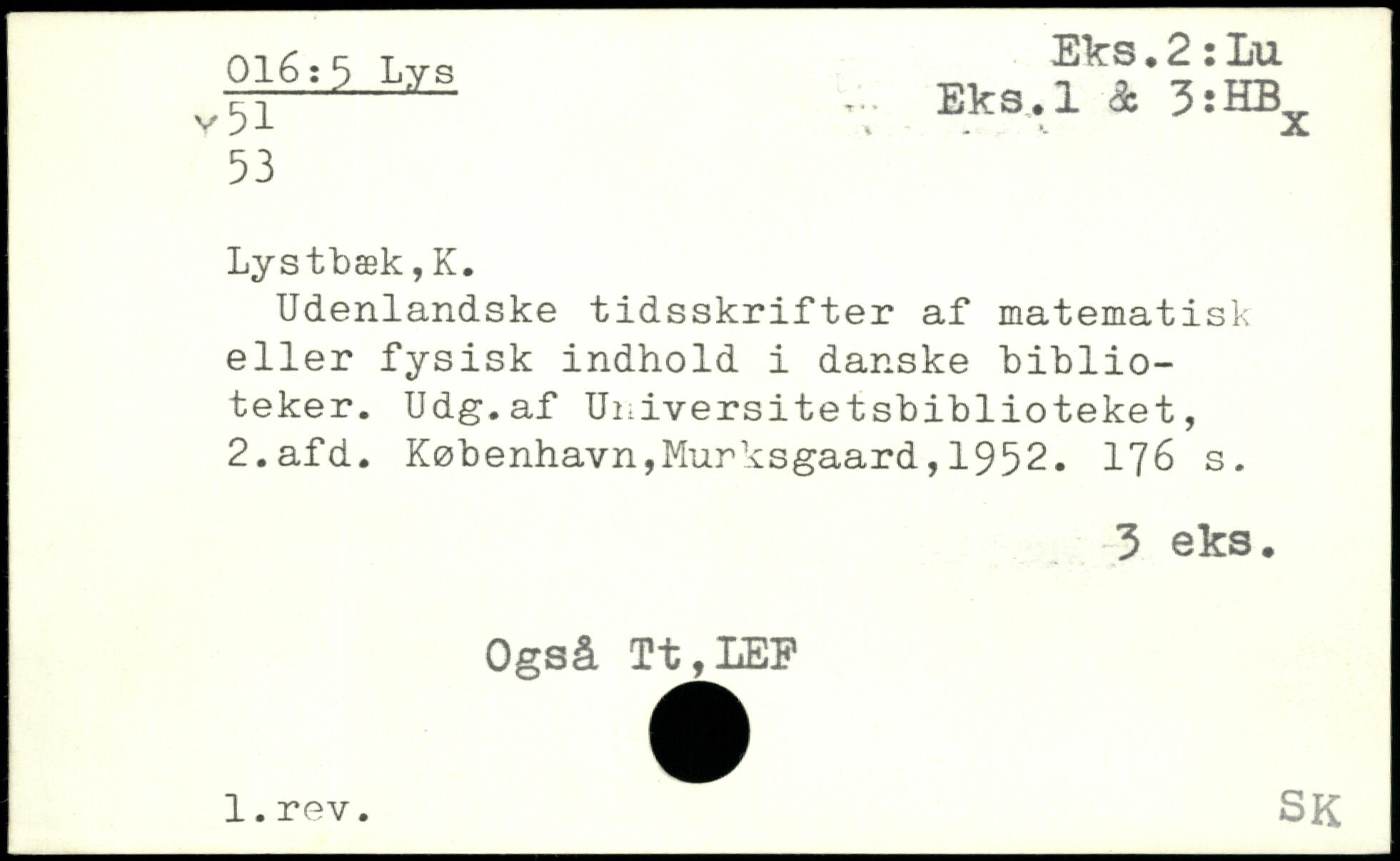Udenlandske tidsskrifter af matematisk eller fysisk indhold i danske biblioteker. Udg.af Universitetsbiblioteket, 2.afd.