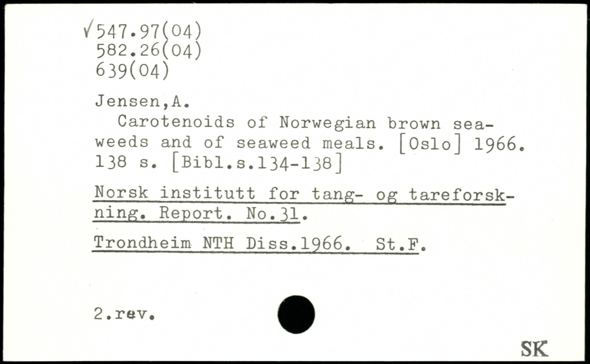 Carotenoids of Norwegian brown seaweeds and of seaweed meals. [Oslo] 1966.
