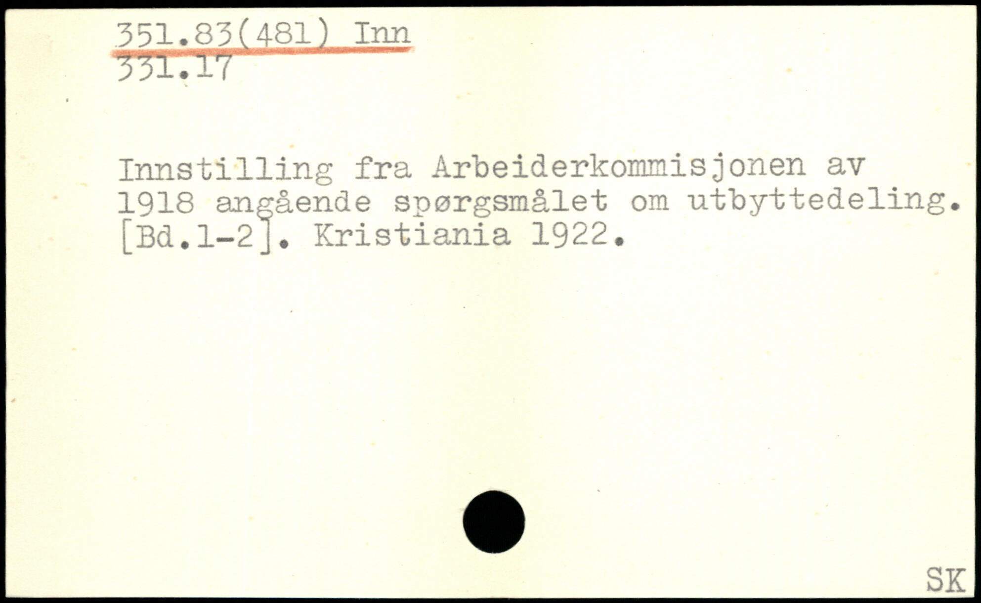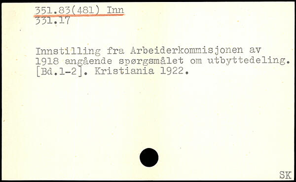 Innst1111ng fra Arbeiderkommisjonen av 1918 angående spørgsmålet om utbyttedeling. [