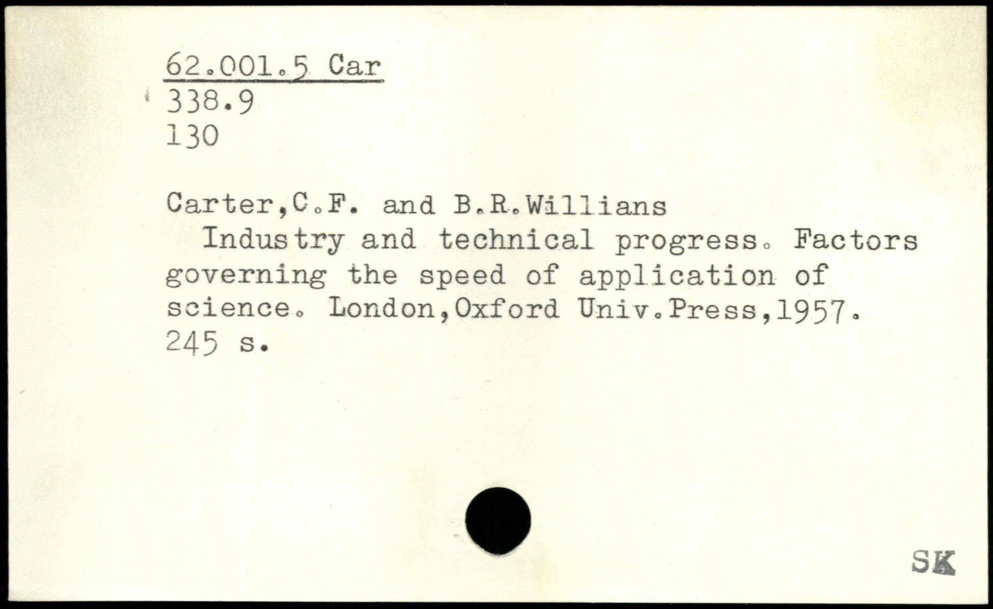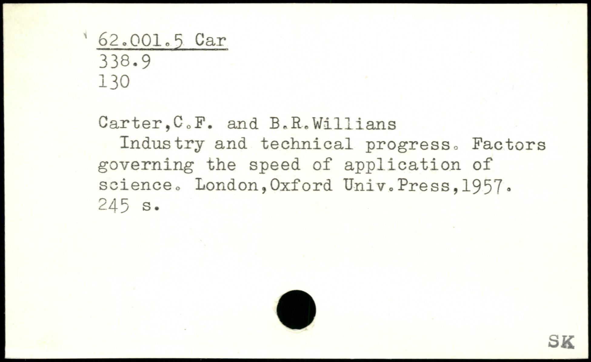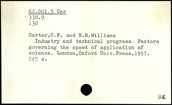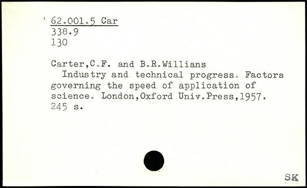 Industry and technical progress. Factors governing the speed of application of science. London,Oxford TJniv.Press, 1957.