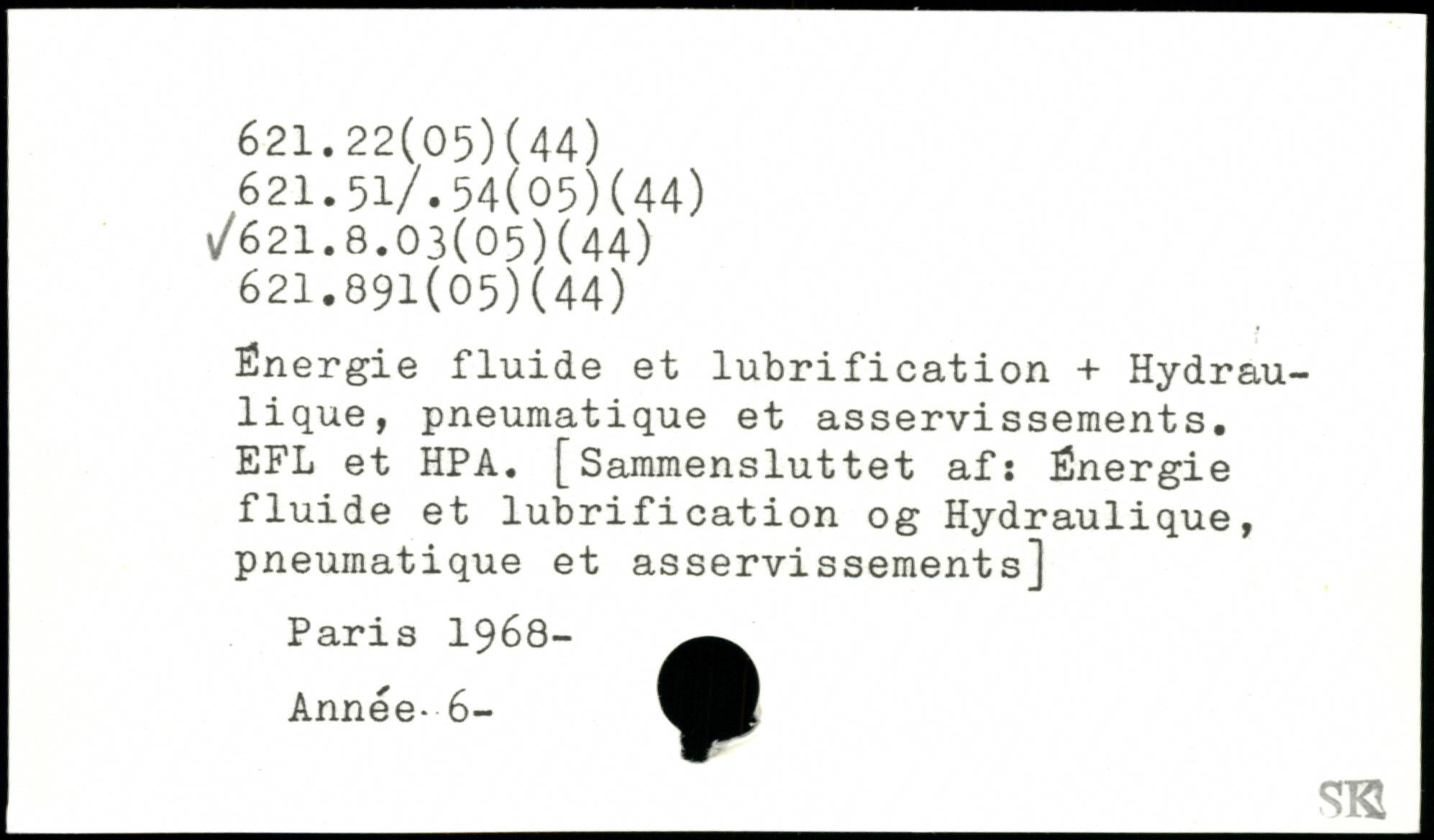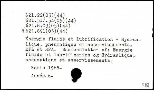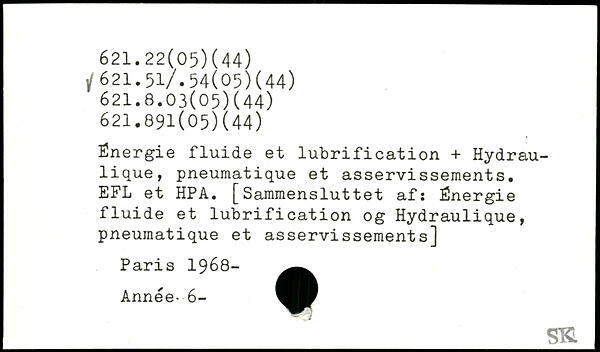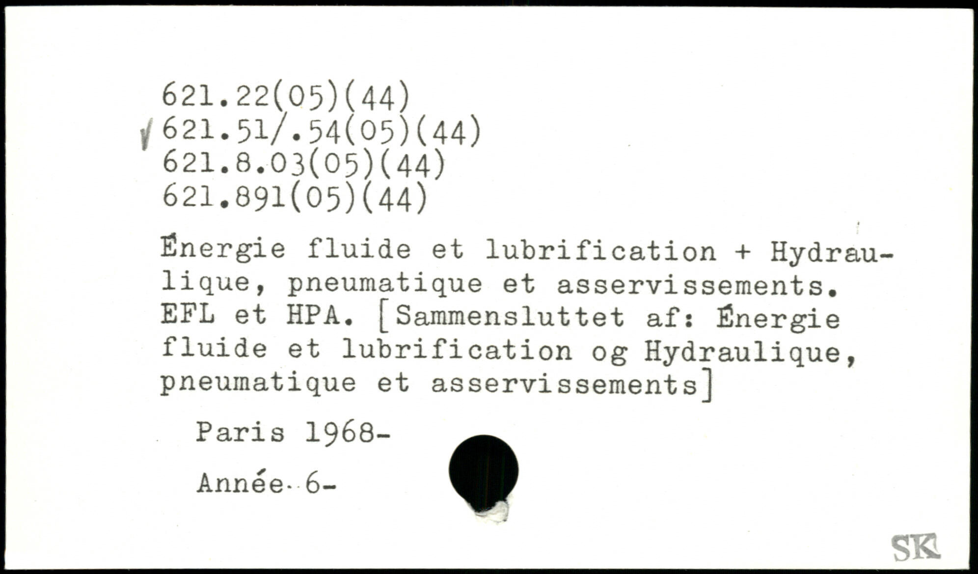 Énergie fluide et lubrification + Hydrau-lique, pneumatique et asservissements. EFL et HPA. [Sammensluttet af: Énergie fluide et lubrification og Hydraulique, pneumatique et asservissements]