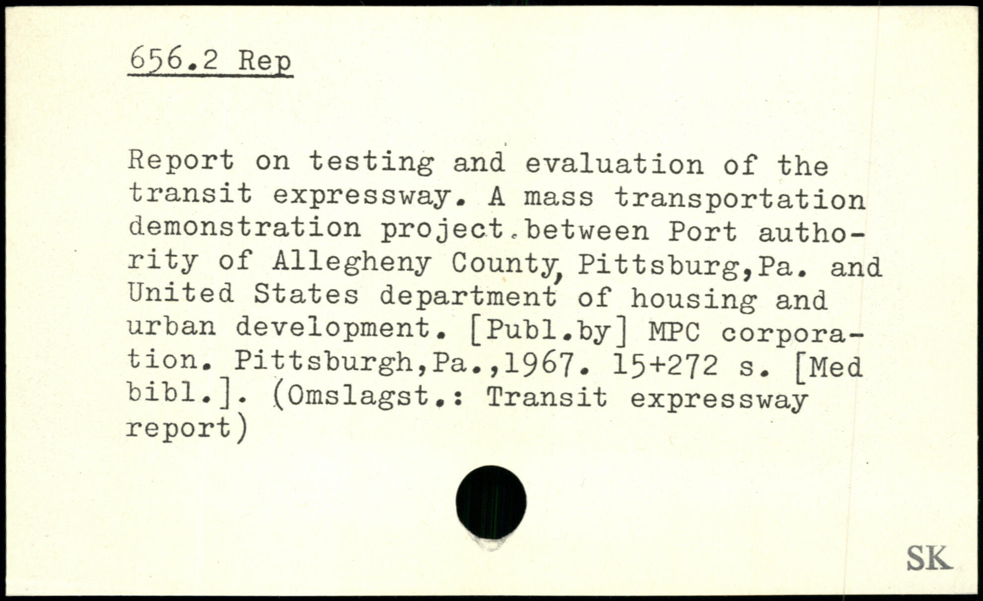 Report on testing and evaluation of the transit expressway, A mass transportation demonstration pro ject. "between Port authority of Allegheny County, Pittsburg,Pa. and United States department of housing and urban development.