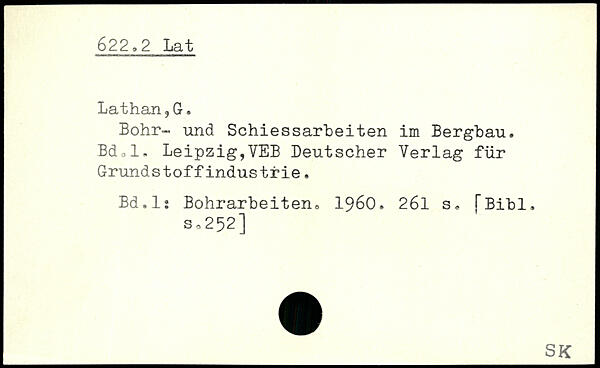 Bohr- und Schiessarbeiten im Bergbau. Bdol. Leipzig,VEB Deutscher Verlag für Grundstoffindustrie. Bd.l: Bohrarbeiten, 1960. 26l s.
