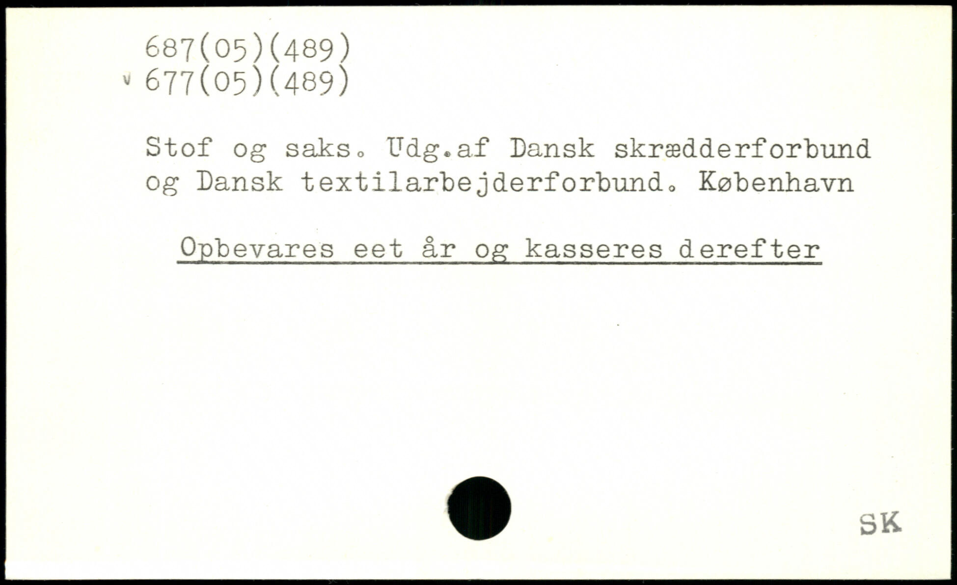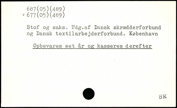 Stof og sakso Udg.af Dansk skrædderforbund og Dansk textilarbejderforbund. København Opbevares eet år og kasseres derefter