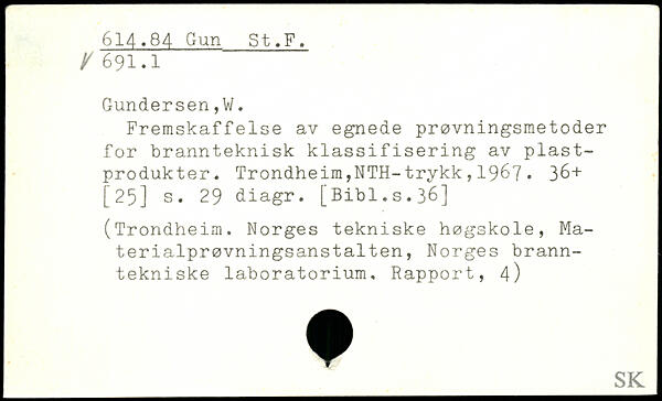 Fremskaffelse av egnede prøvningsmetoder for brannteknisk klassifisering av plastprodukter.