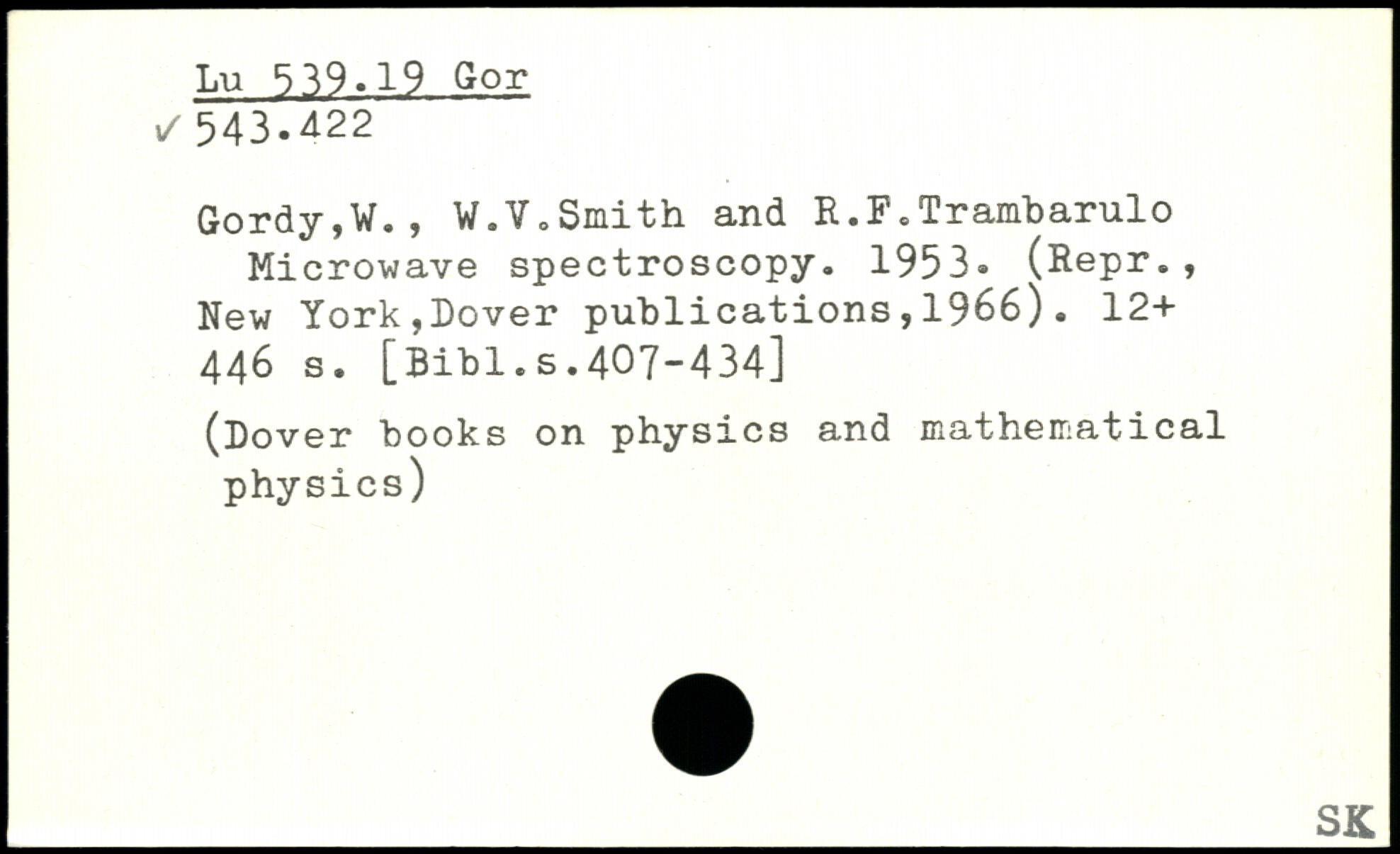 Gordy,W., W.VoSmith and R.FeTrambarulo Microwave spectroscopy. 1953, (