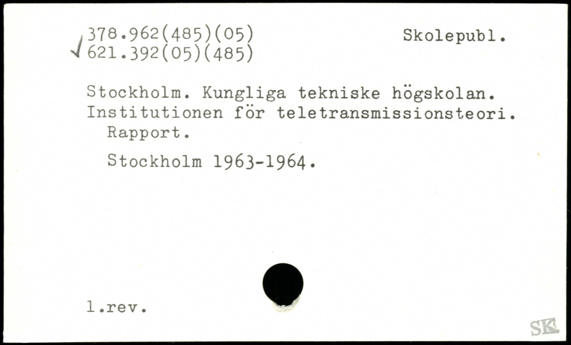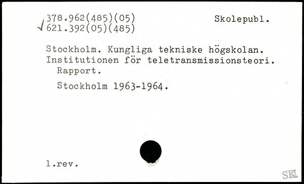 Stockholm. Kungliga tekniske högskolan. Institutionen för teletransmissionsteori. Rapport.