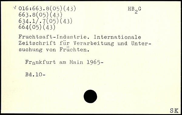 Fruchtsaft-Industrie. Internationale Zeitschrift für Verarbeitung und Untersuchung von Fruchten.