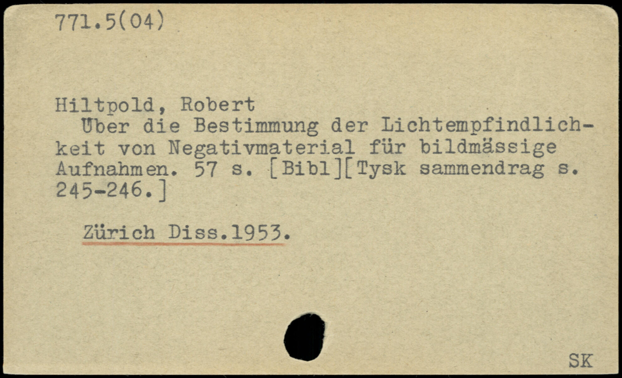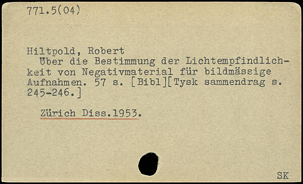 Hiltpold, Robert tfber die Bestimmung der Lichtempfindlich-keit von Negativmaterial flir bildmåssige Aufnahmen.