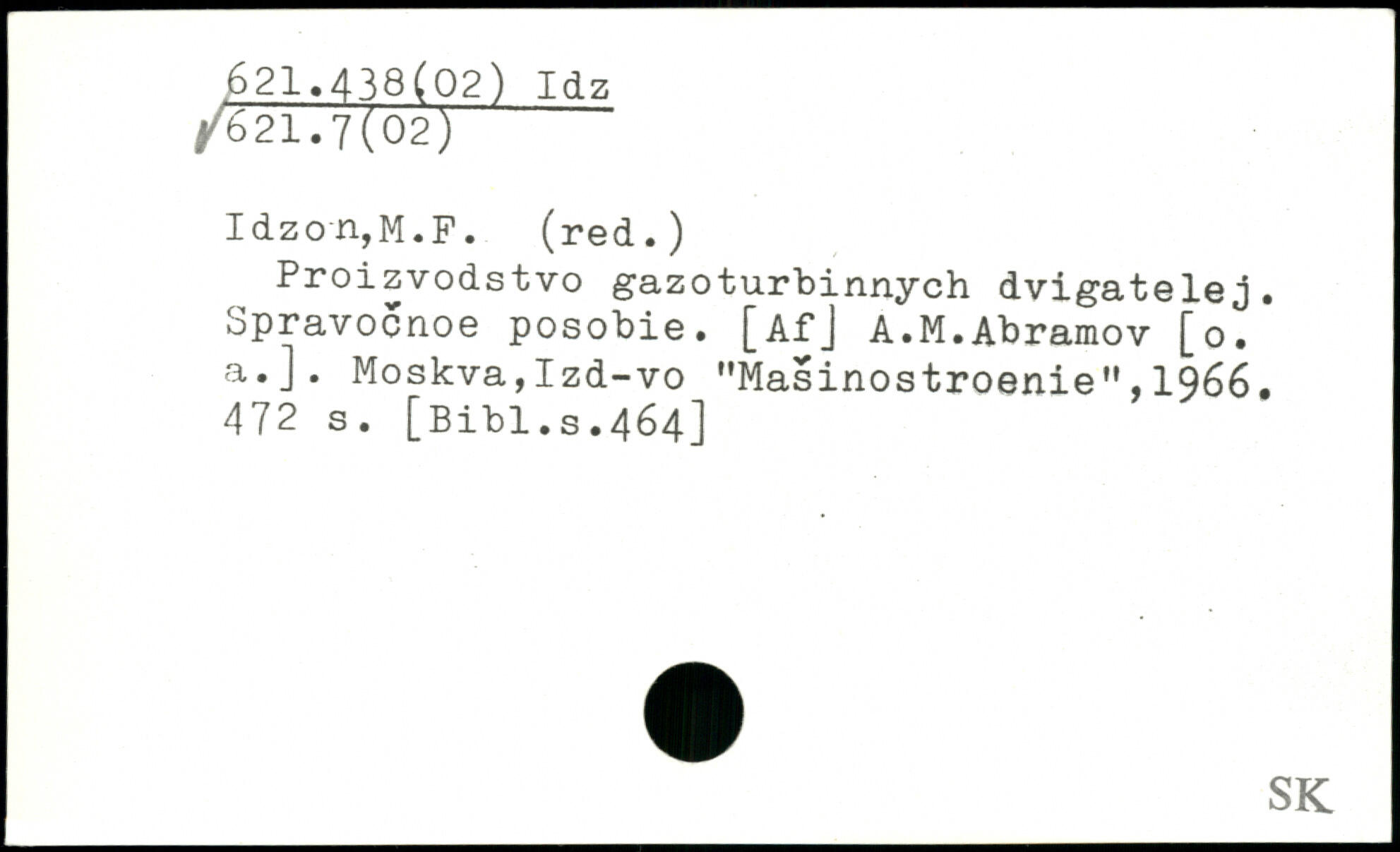 Proizvodstvo gazoturbinnych dvigatelej. Spravocnoe posobie. [AfJ A.M.Abramov [o. a.]. Moskva,Izd-vo "Masinostroenie",1966.
