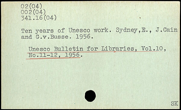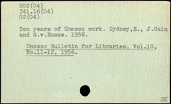 Ten years of Unesco work. Sydney,E., J.Cain and G.v.Busse. 1956. Unesco Bulletin for Libraries