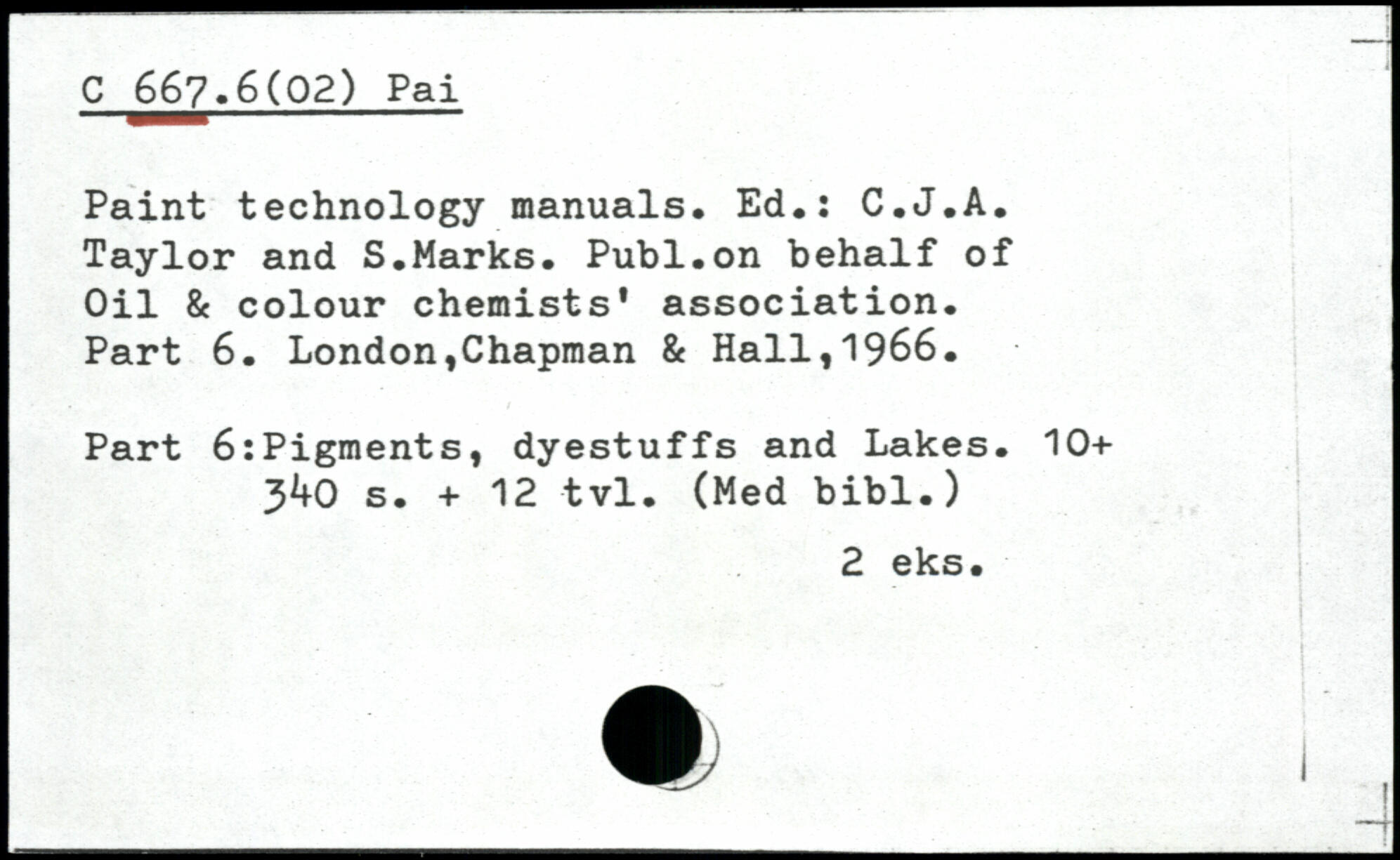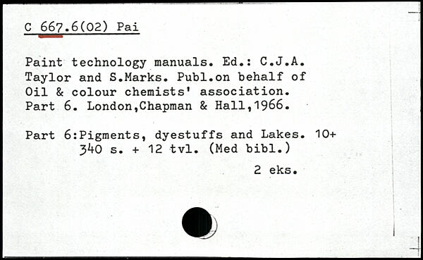 Paint technology manuals, Ed,: C.J.A. Taylor and S,Marks. Publ.on behalf of Oil & colour chemists' association. Part 6.