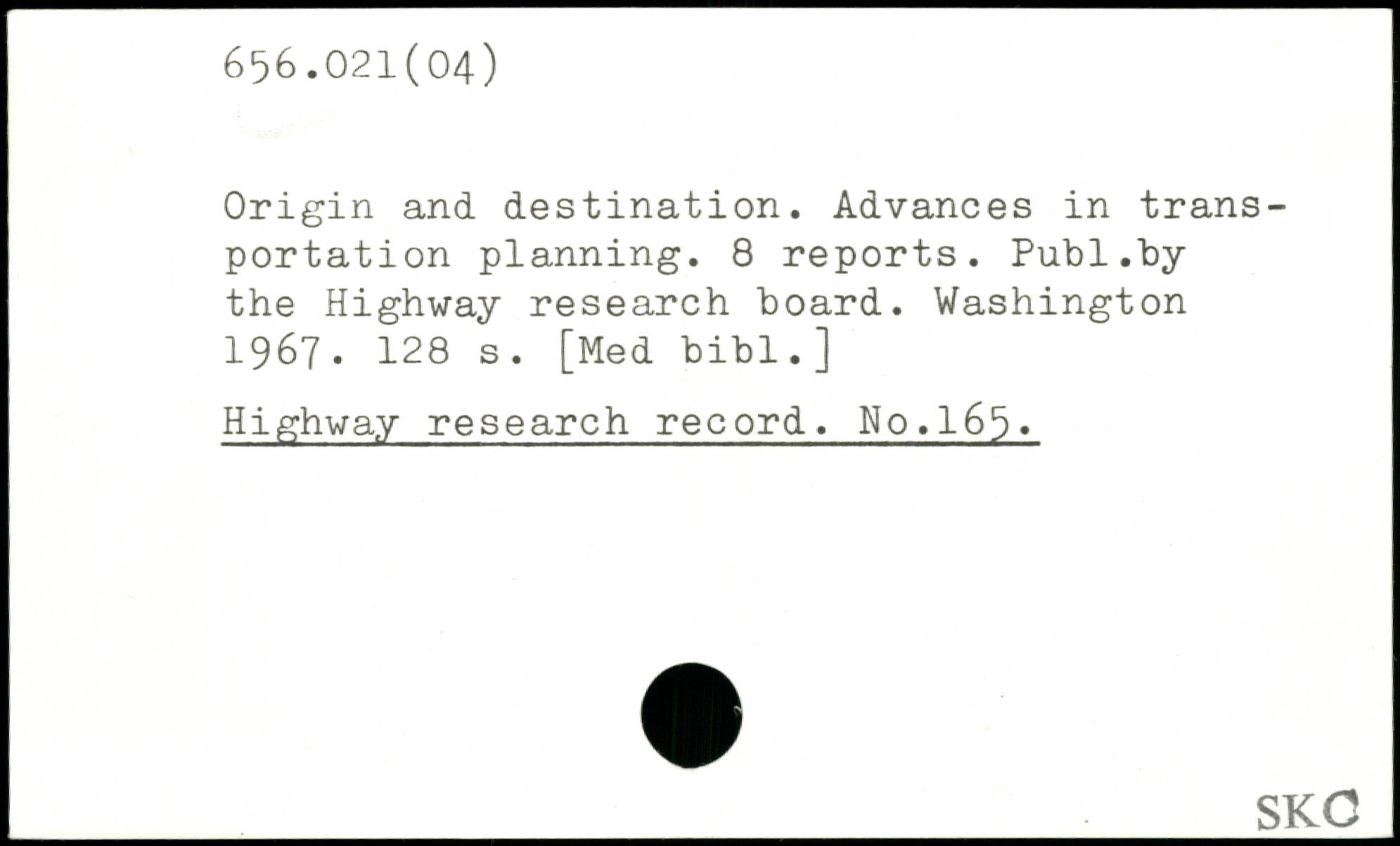 Origin and destination. Advances in transportation planning. 8 reports.