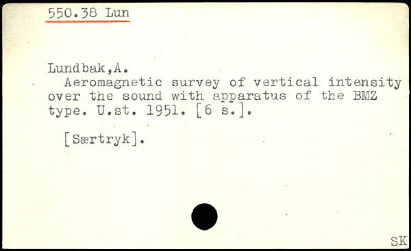 Aeromagnetic survey of vertical intensity over the sound with apparatus of the BMZ type. U.st. 1951. [