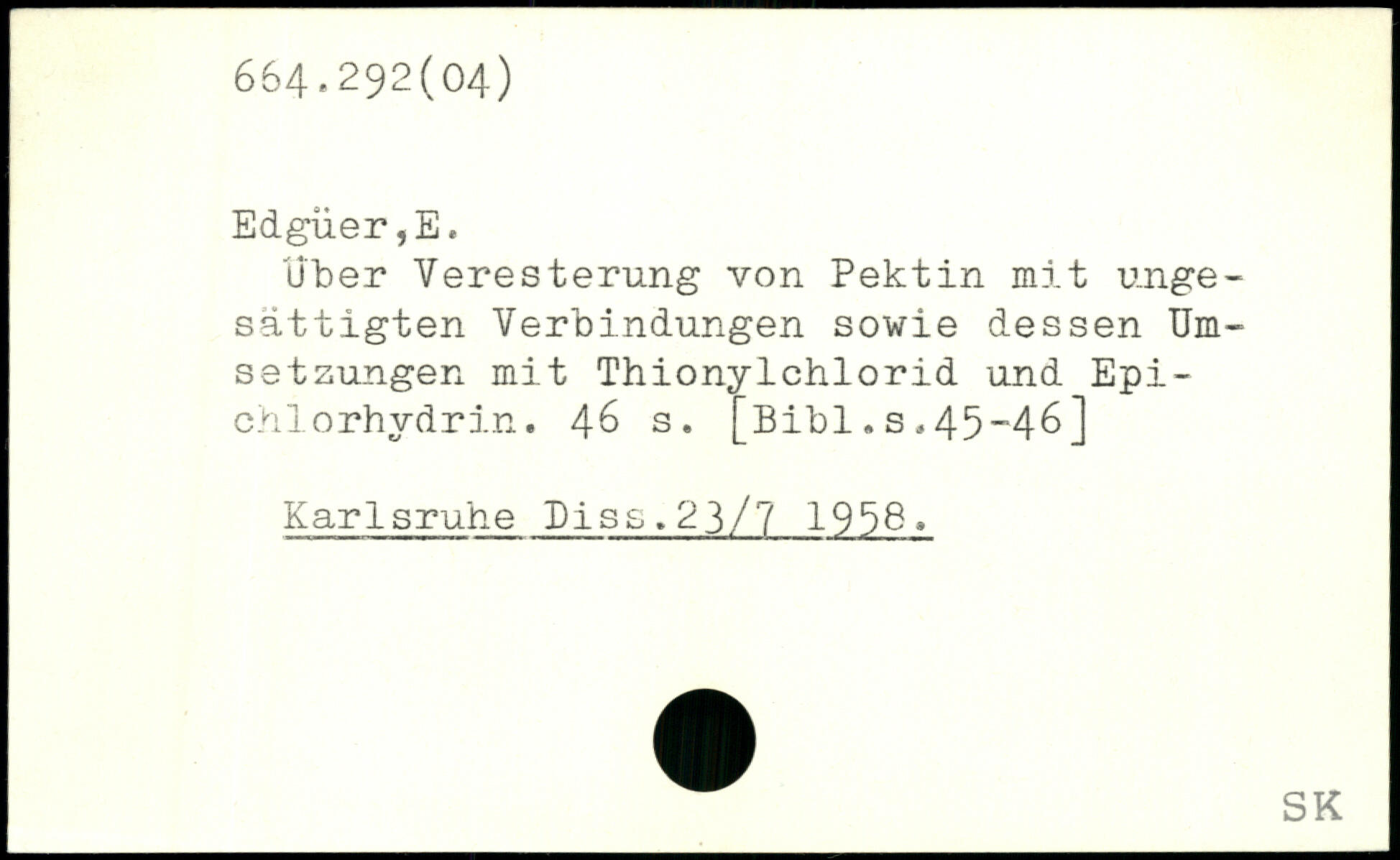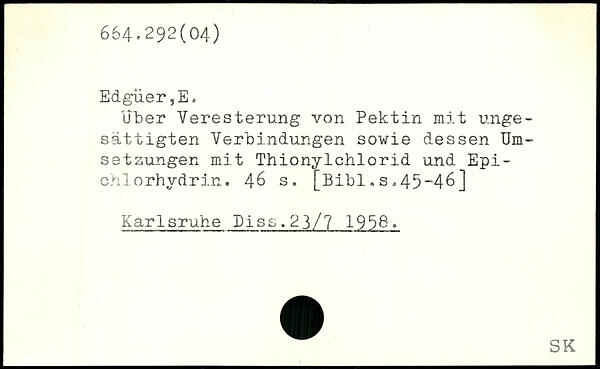 Uber Veresterung von Pektin mit ungesättigten Verbindungen sowie dessen Umsetzungen mit Thionylchlorid und Epichlorhydrin.