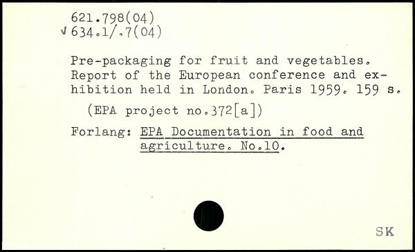 Pre-packaging for fruit and vegetables, Report of the European conference and exhibition held in London