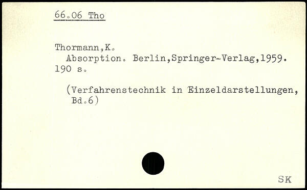 Absorption, Berlin,Springer,Verlag,1959, 190 So (Verfahrenstechnik in Einzeldarstellungen, Bdo6)