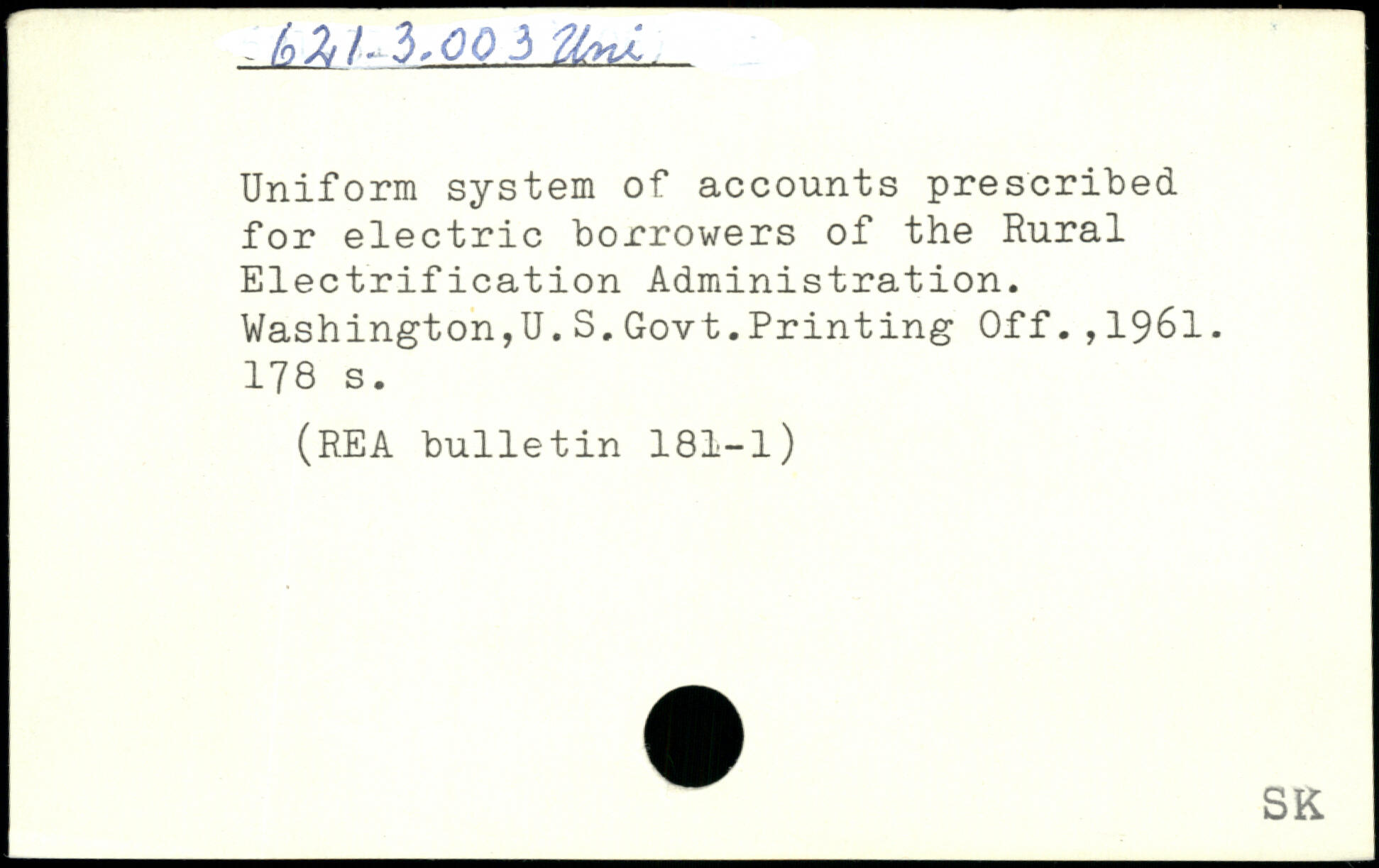 Uniform system of accounts prescribed for electric borrowers of the Rural Electrification Administration. Washington,U.S.Govt.Printing Off.,1961.