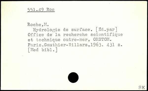 Hydrologie de surface. [Eïd.par] Office de la recherche scientifique et technique outre-mer, ORSTOM.