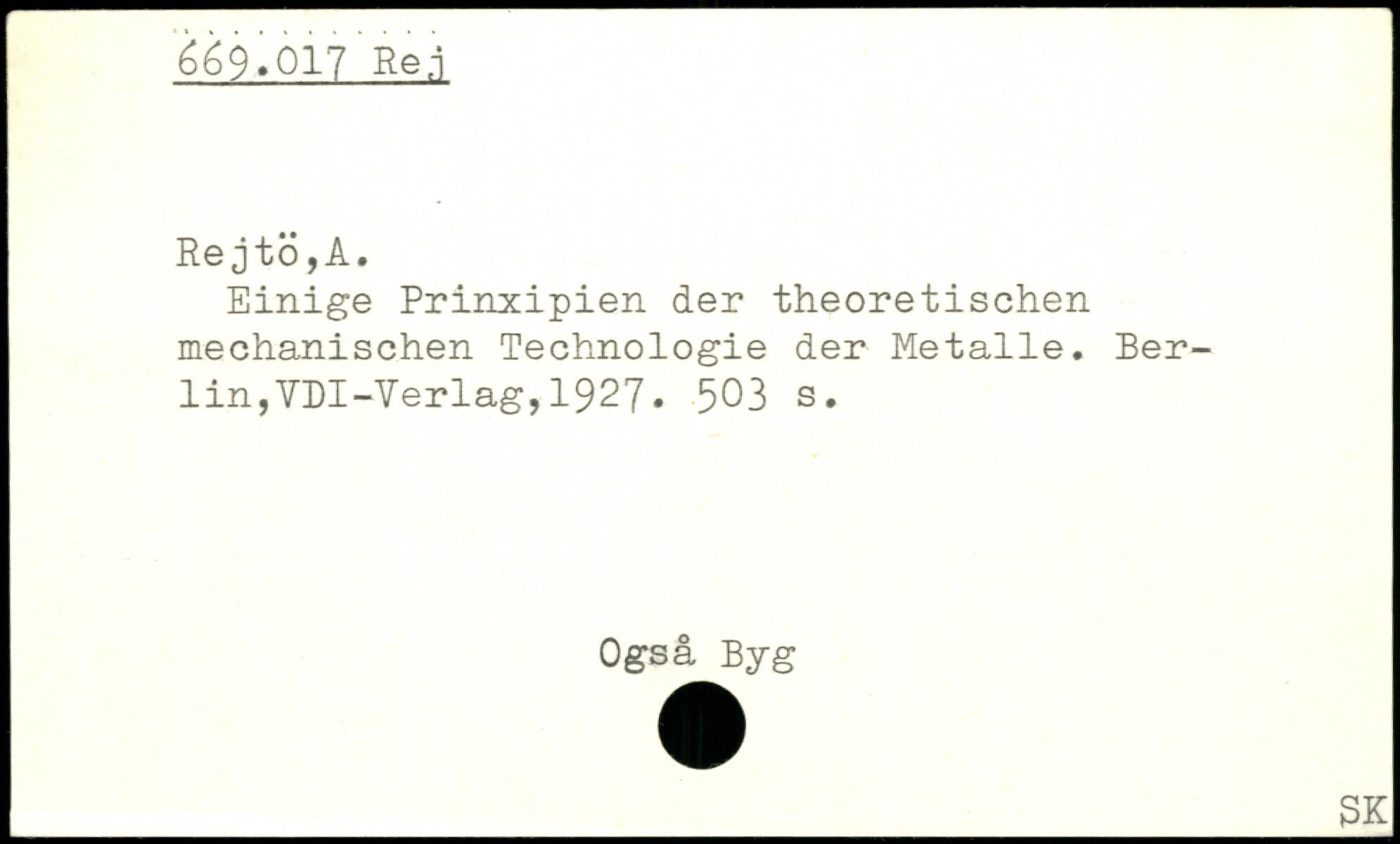 Einige Prinxipien der theoretischen mechanischen Technologie der Metalle.